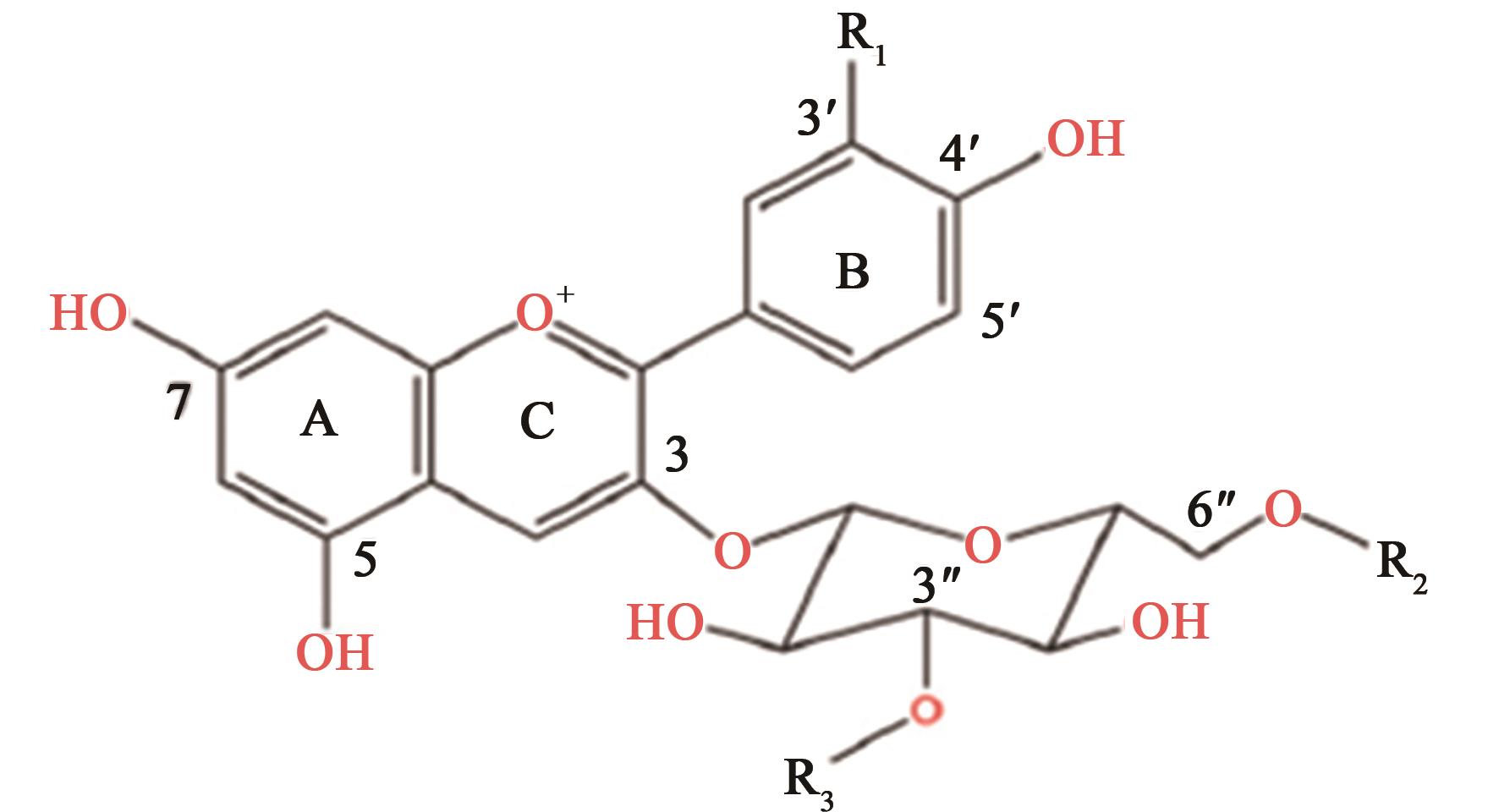 矢车菊素-3-(6’-丙二酰)葡萄糖苷 Cyanidin-3- (6’- malonyl) glucoside | C3MG | OH | 丙二酰Malonyl | H |