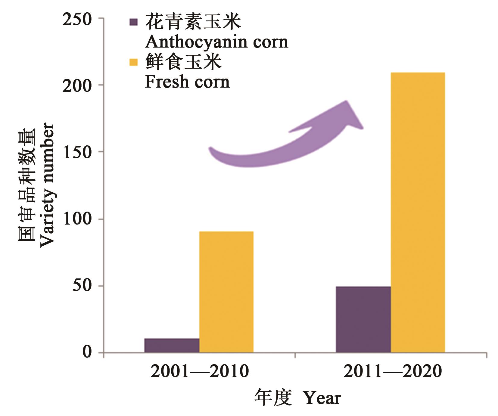 图3 我国花青素玉米品种审定趋势数据来源:中华人民共和国农业农村部公告。
