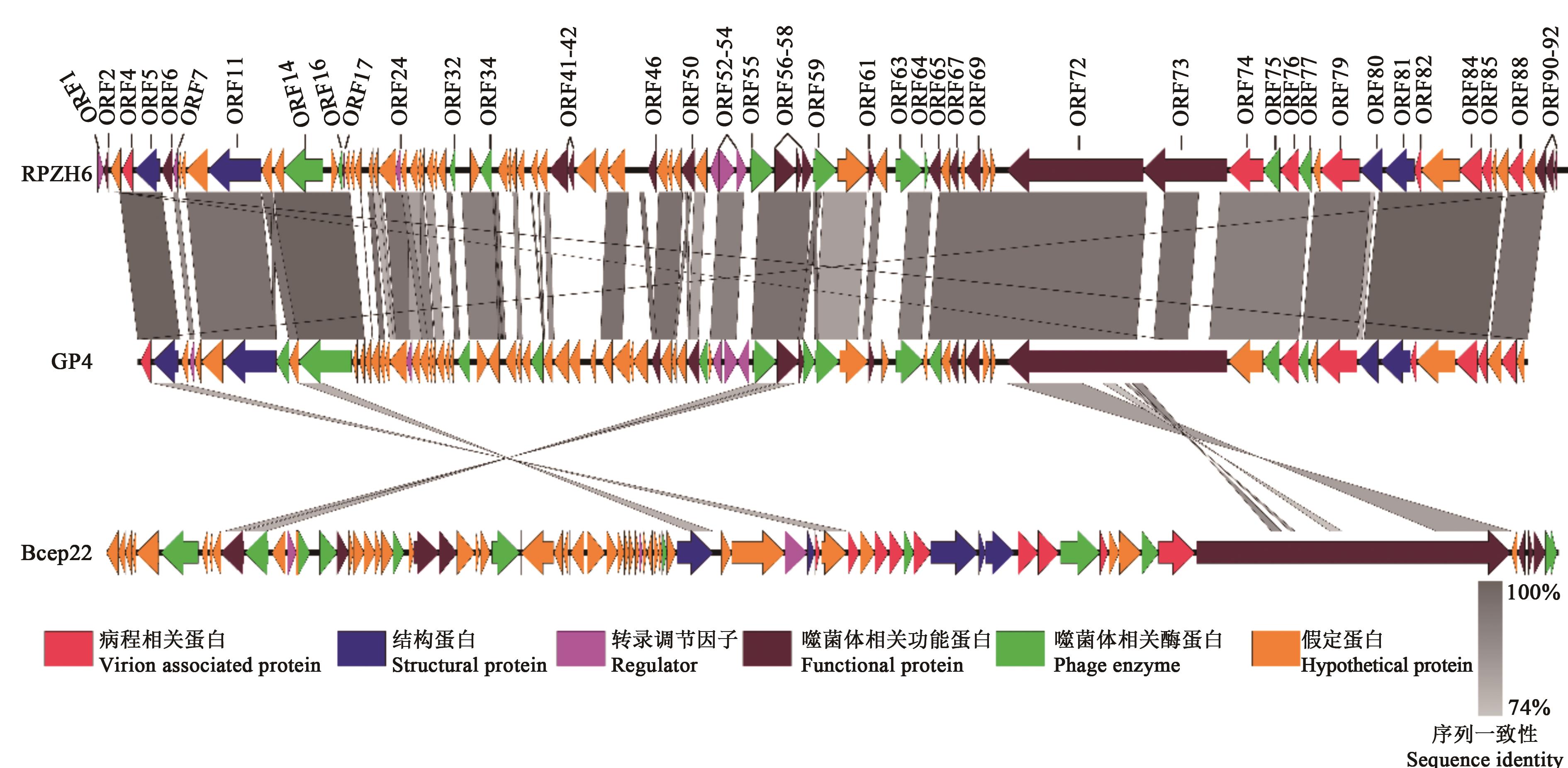 表2 噬菌体RPZH6基因组47个ORF功能预测