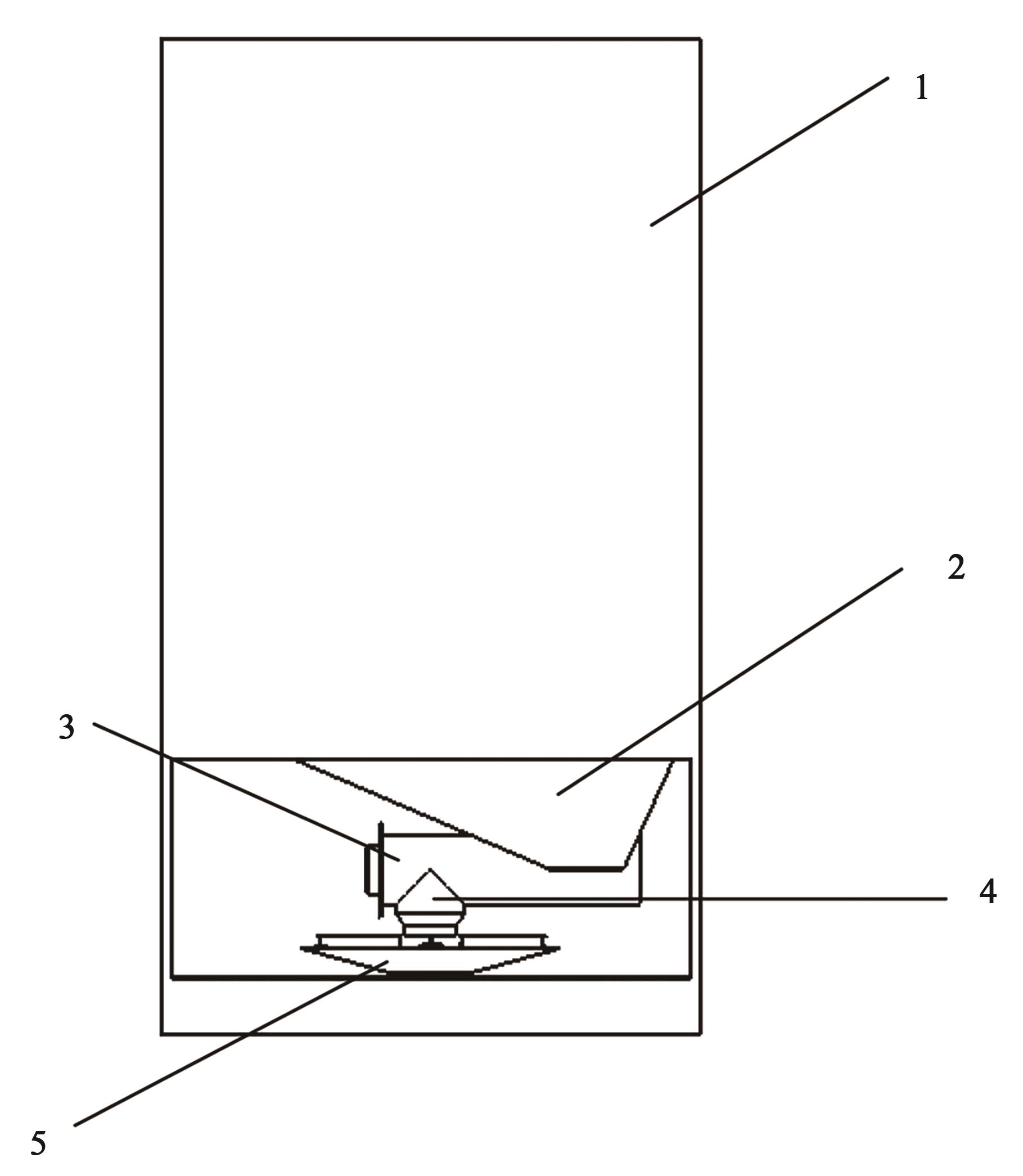 Fig. 1 Structure of feeding machineNote: 1—Feeder shell;2—Material box;3—Feeding shaft;4—Blanking port;5—Centrifugal disc.