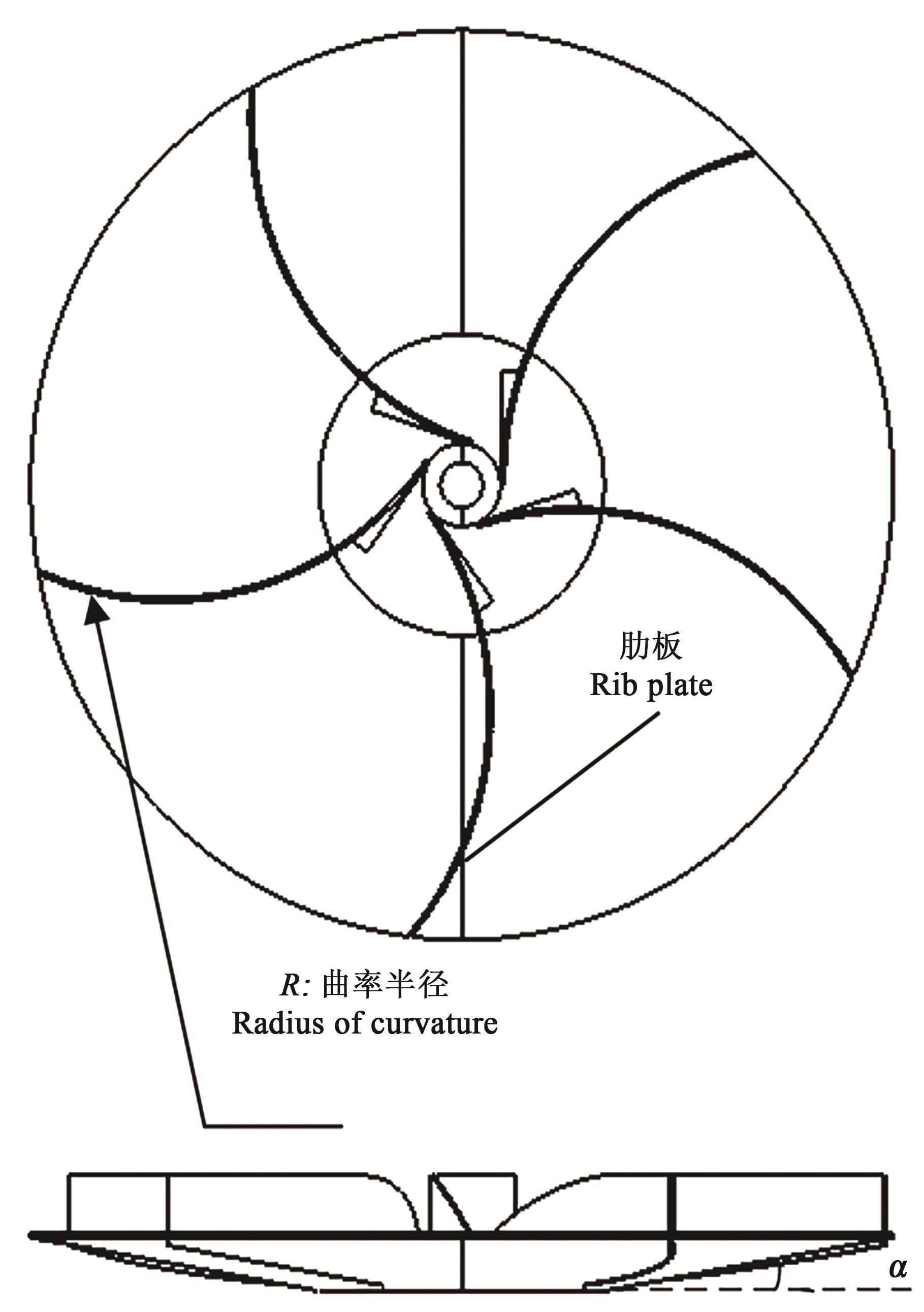 盘倾角 Tilt angle of disc/(°) | 肋板个数 Number of ribs | 曲率半径 Radius of curvature/mm | ||