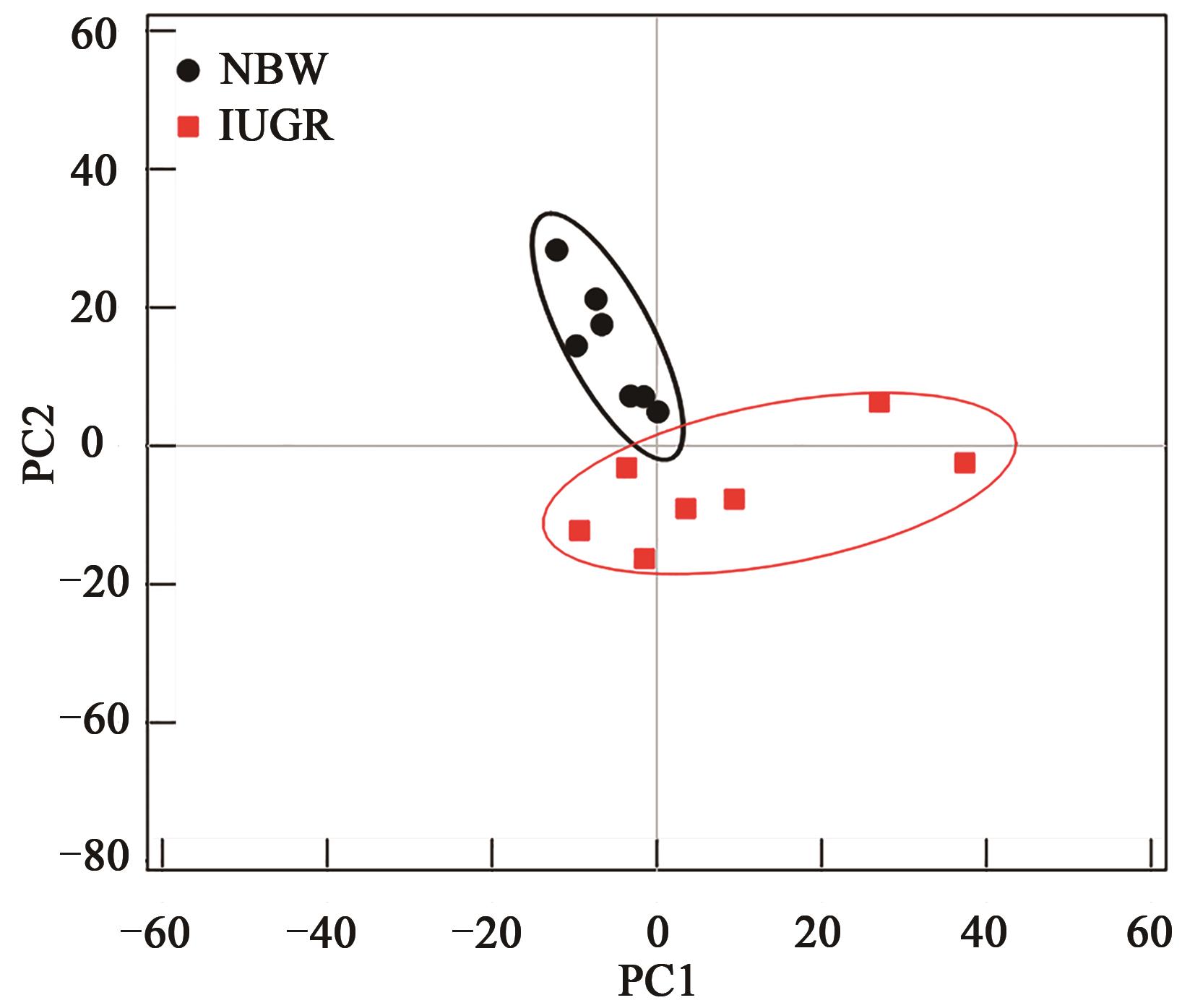 湖羊是我国珍贵的肉毛兼用的绵羊品种,并具有繁殖率高和宜舍饲等特点。在生产中,往往因其多胎性易导致妊娠期湖羊营养不良,造成新生羔羊宫内生长受限(intrauterine growth retardation,IUGR)。应用代谢组学一维氢谱核磁共振技术(1H-nuclear magnetic resonance,1H-NMR)研究新生羔羊的血浆代谢谱。根据出生体质量筛选出14只湖羊新生羔羊,分为正常出生体质量组(normal birth weight,NBW)和IUGR组(n=7),采用1H-NMR分析其血液样品。将代谢谱数据进行统计分析,并对鉴定的代谢物进行表达差异分析以及代谢途径归属。NBW组和IUGR组新生羔羊血浆样品共获得32种代谢物,16种代谢物在2组间差异表达,IUGR组有10个代谢物含量显著低于NBW组(P<0.05),6个代谢物含量显著高于NBW组(P<0.05)。2组间差异显著的代谢通路主要为氨基酸、碳水化合物、脂类物质等代谢通路。应用基于1H-NMR的代谢组学及生物信息学分析方法,确定了IUGR新生羔羊与正常羔羊血液代谢物之间存在差异,为进一步深入研究IUGR的分子机制奠定了基础。