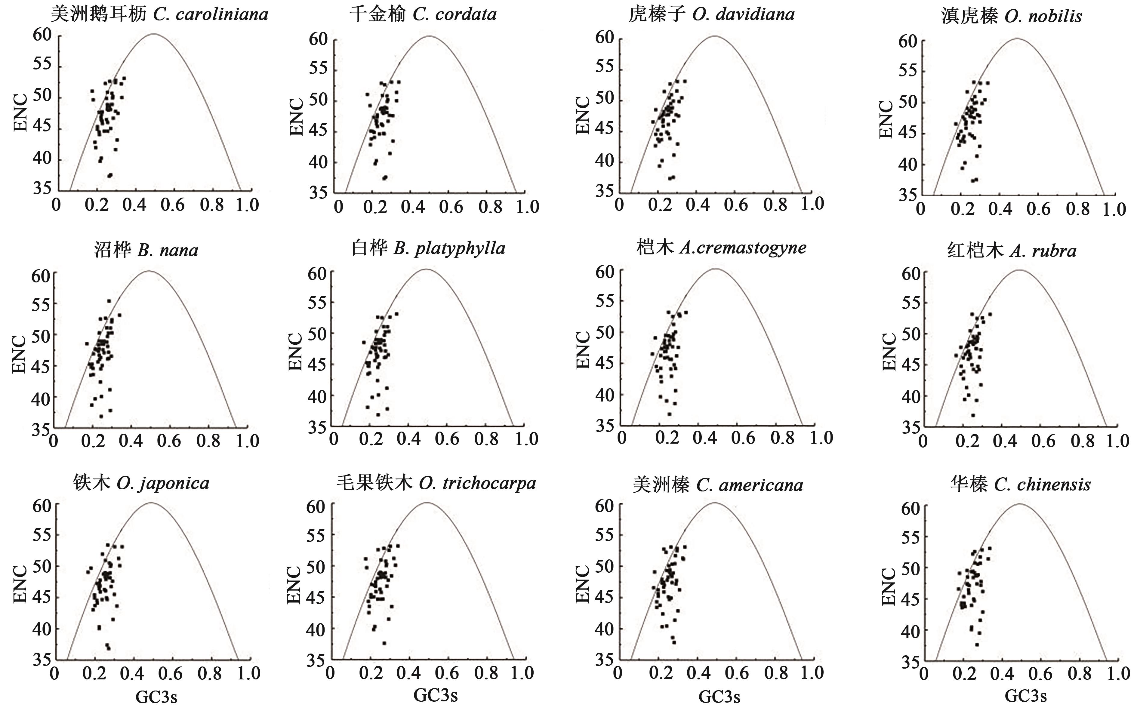 表1 桦木科叶绿体基因组密码子使用偏性相关参数