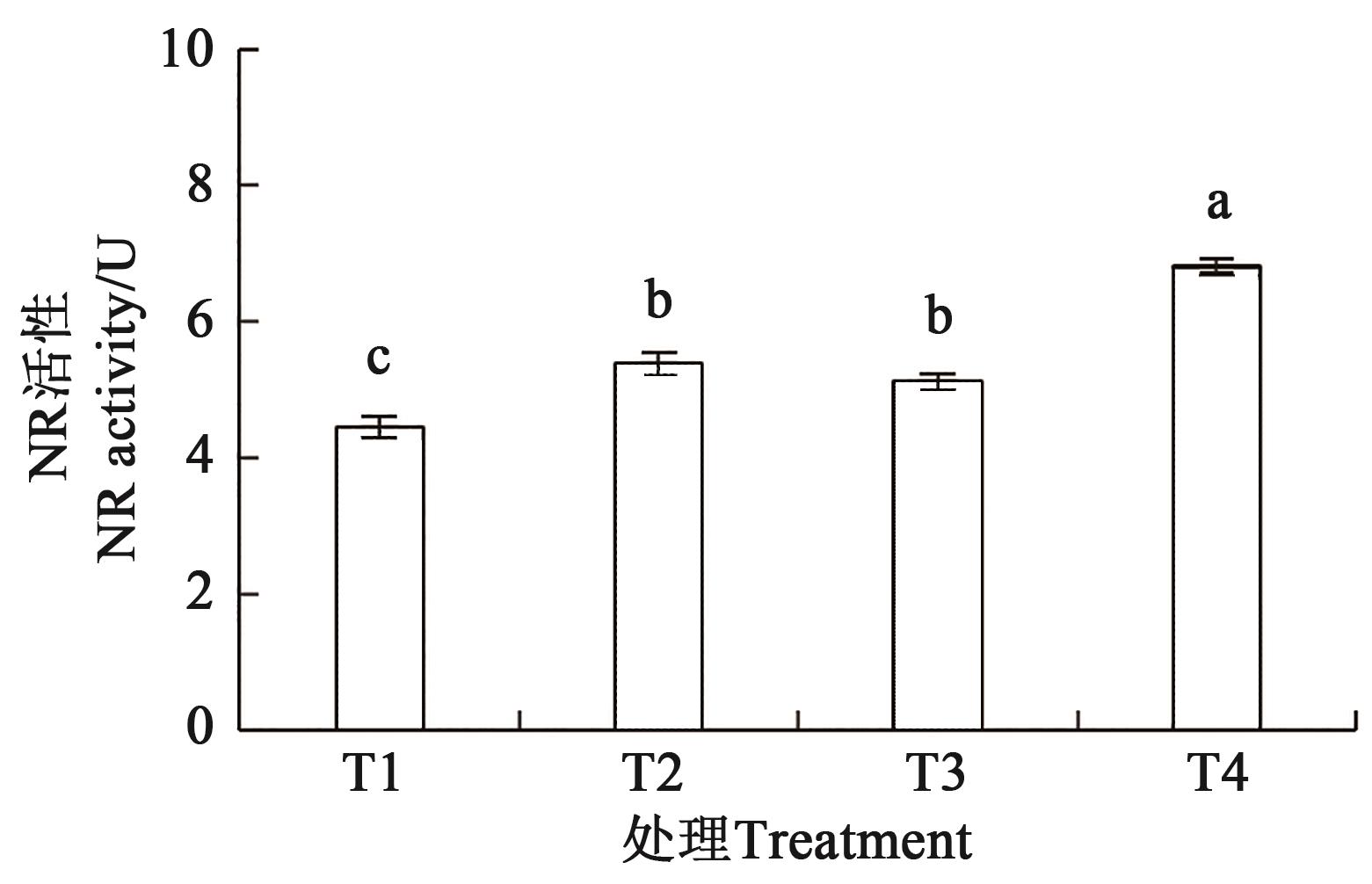 图3 不同处理下采收期烤烟NR的活性注:不同小写字母表示处理间差异在P<0.05水平显著。