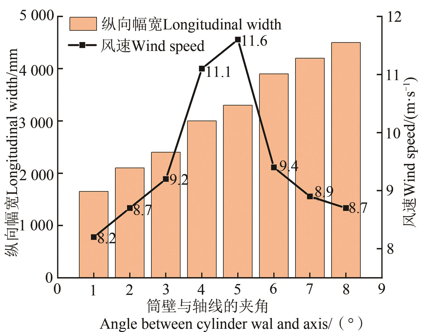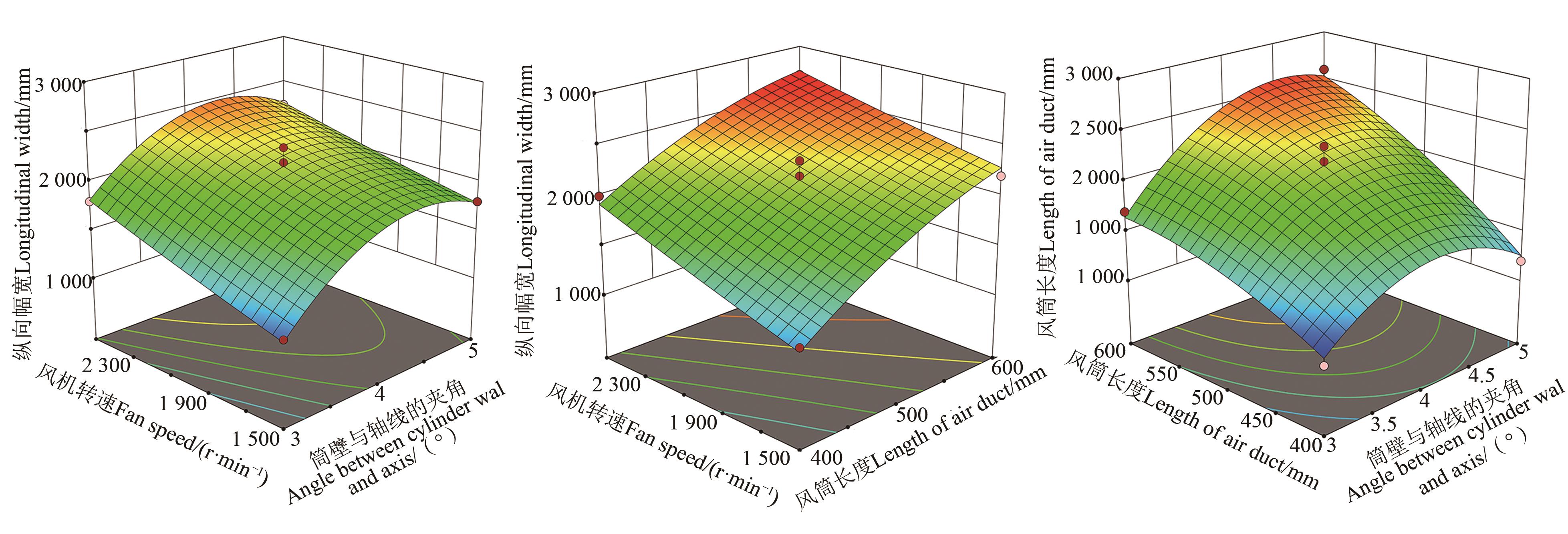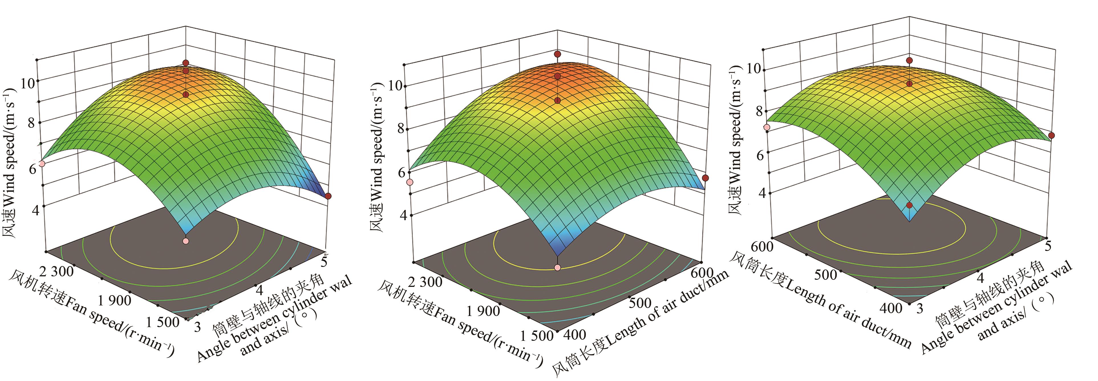 A:筒壁与轴线的夹角Angle between cylinder wall and axis/(°) | B:风筒长度Air duct length/mm | C:风机转速Fan speed/ (r·min-1) | |