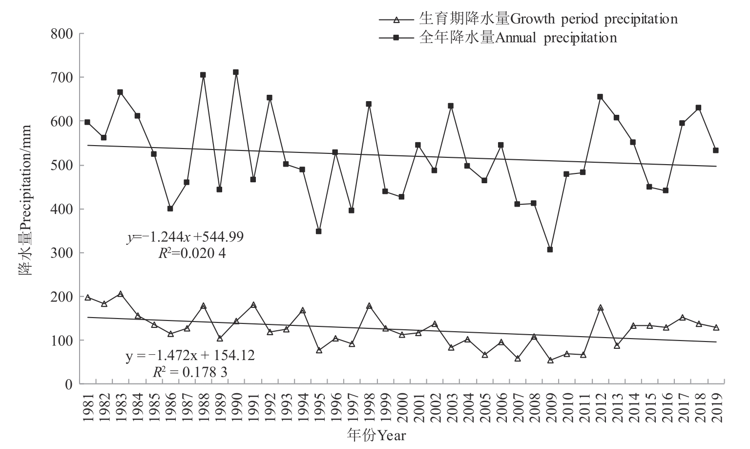 冬小麦是黄土旱塬区重要口粮作物,产量受降水等因素影响较大,为研究降水对冬小麦耗水规律和产量的影响,收集、统计甘肃省农业科学院镇原试验站近40年冬小麦长期观测数据,分析冬小麦产量、耗水量等指标随降水变化的趋势。结果表明,黄土旱塬区近40年冬小麦产量以每年51.2 kg·hm-2速度增加,但持续系数仅为0.43;10月中旬至11月中旬、3月中上旬、5月上旬和下旬降水量增加,产量随之显著增加;全生育期降水满足率为64.4%,干旱年型仅为52.7%,不同生育时期中拔节-灌浆期满足率最低。冬小麦生育期耗水量近40年呈降低趋势,平均为361.3 mm,播种-返青期耗水占全生育期的34.3%,为全生育期耗水最大的时期;干旱年和平水年分别在出苗-拔节期和拔节-灌浆期降水满足率最低,分别为36.9%和42.2%,此阶段降水对冬小麦产量影响显著。冬小麦产量相关的因素由高到低依次为耗水量>穗数>穗粒数>播前底墒>生育期降水量>全年降水量。近40年来黄土旱塬区冬小麦稳产性差,原因为播种-返青期耗水占全生育期比重较大,降水满足率低,影响了冬小麦分蘖成穗和水分高效利用。以上结果表明,保证该区冬小麦关键生育期降水满足率和休闲期降水高效蓄集,是冬小麦稳产高产的重要保障,研究结果对冬小麦产业可持续发展具有重要意义。