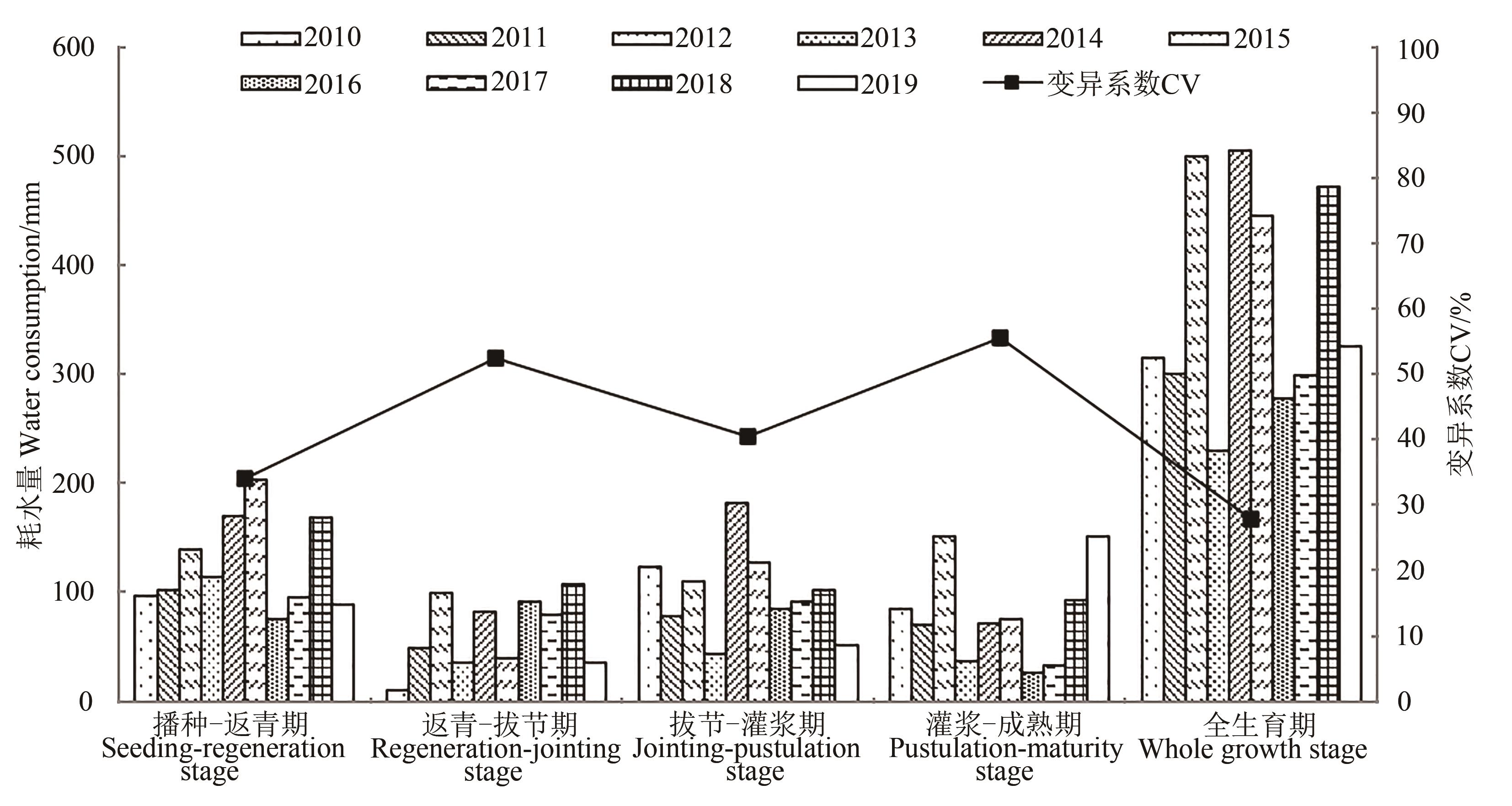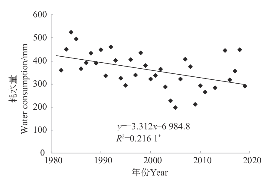 Fig. 6 Water consumption of winter wheat in different yearsNote: * indicates significant correlation at P<0.05 level.