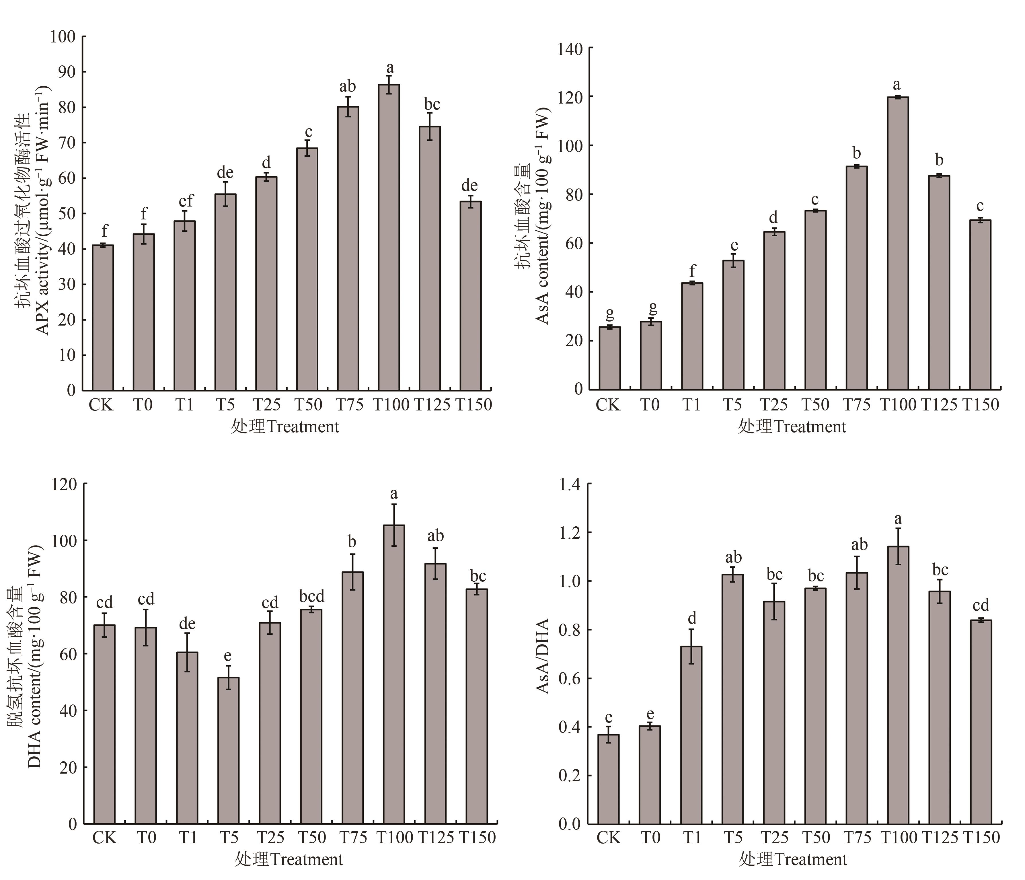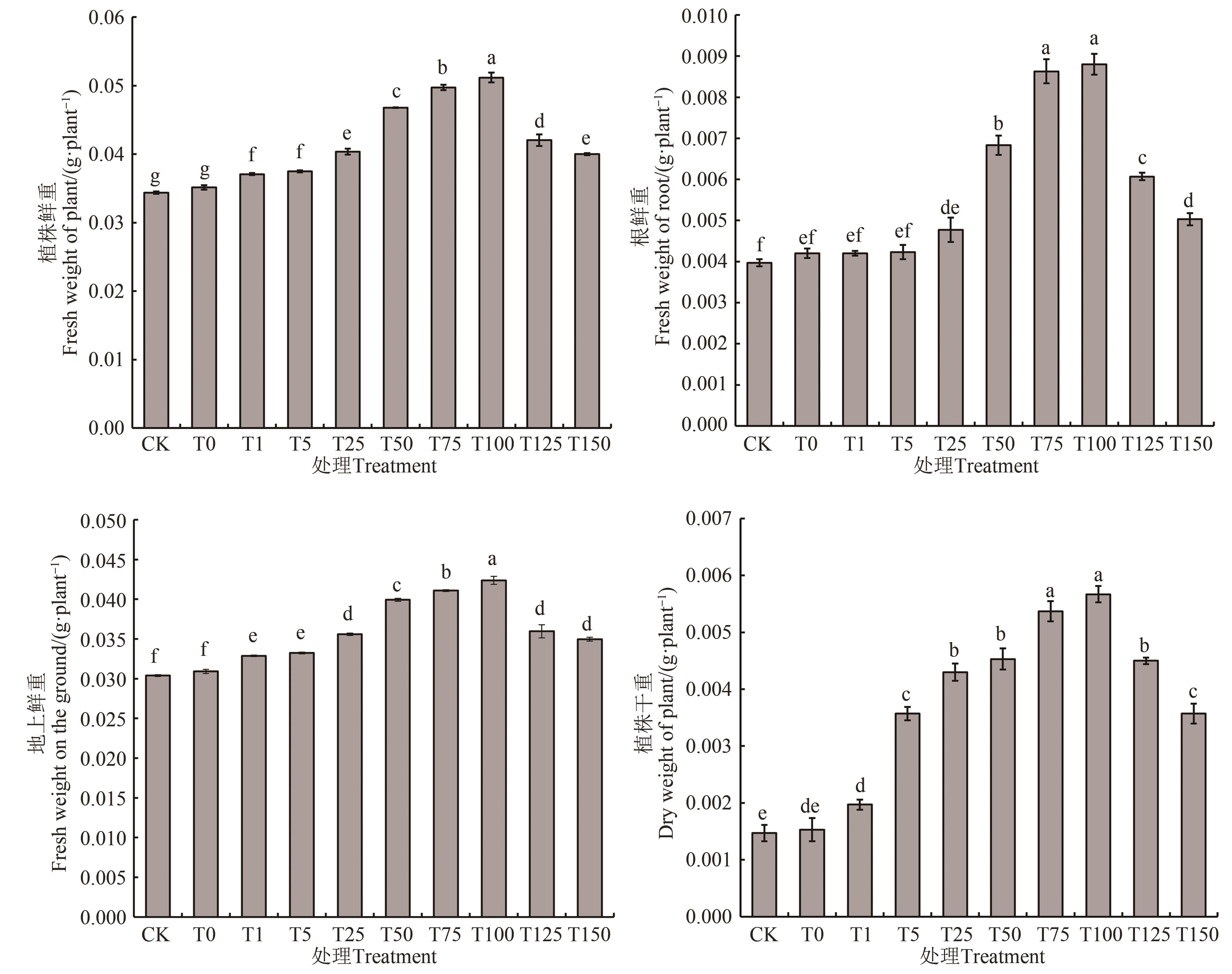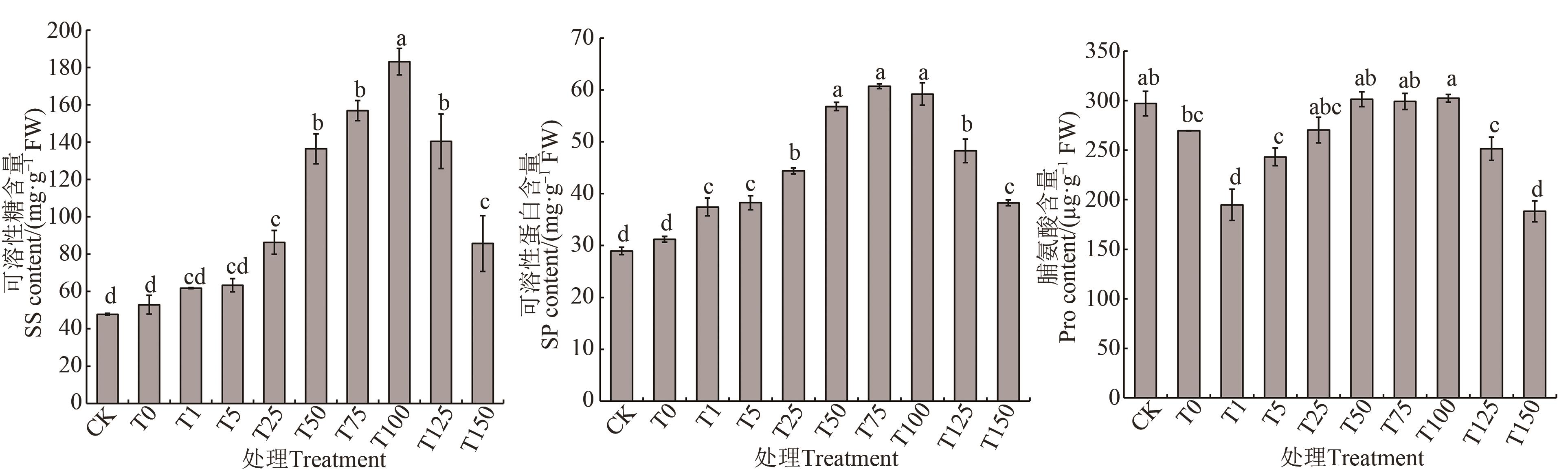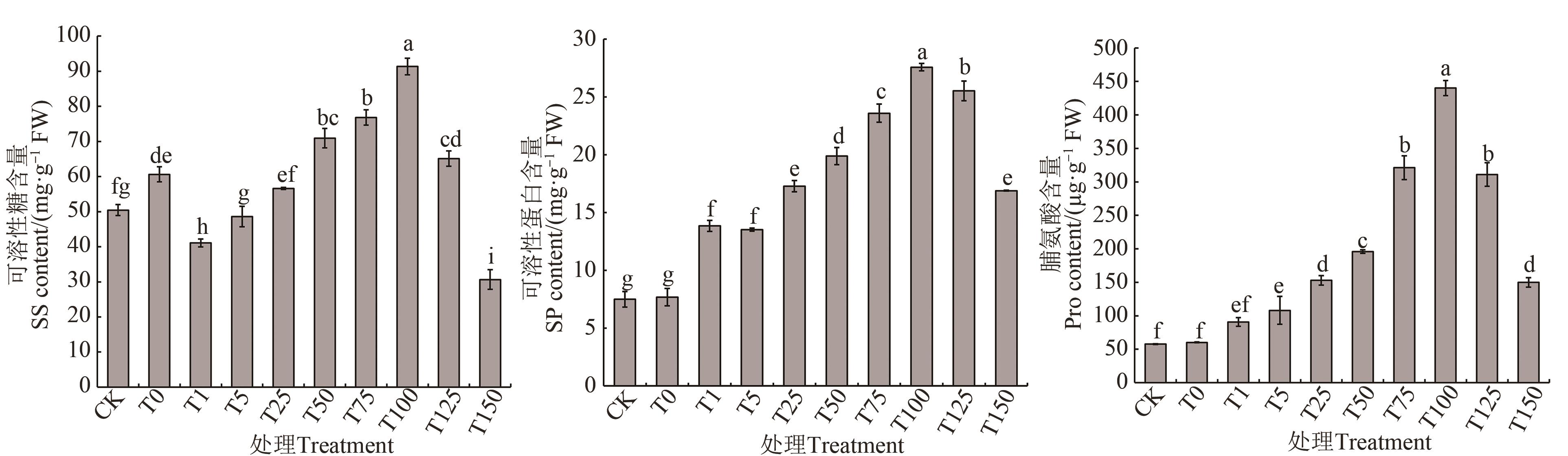 为提高干旱胁迫下朝天椒种子的萌发势和幼苗生长势,采用1、5、25、50、75、100、125、150 μmol·L-1的褪黑素溶液对朝天椒种子进行引发处理,用10% PEG溶液模拟水分胁迫,分析朝天椒种子萌发和幼苗生长状况及其生理变化。结果表明,与未引发种子相比,100 μmol·L-1褪黑素溶液引发的朝天椒种子在干旱胁迫下发芽势、发芽率、发芽指数和活力指数显著增加425.01%、122.73%、178.55%和796.93%;干旱胁迫下朝天椒幼苗的全长、根长、株高、鲜重、根鲜重、地上鲜重和植株干重显著增加146.70%、221.74%、70.00%、48.88%、121.66%、39.38%和285.71%。生理分析表明,100 μmol·L-1褪黑素溶液引发的种子的过氧化氢酶(catalase,CAT)活性、抗坏血酸过氧化物酶(ascorbate peroxidase,APX)活性和可溶性糖(soluble sugar,SS)含量最高,丙二醛(malondialdehyde,MDA)和过氧化氢(hydrogen peroxide,H2O2)含量最小;100 μmol·L-1褪黑素引发的种子在干旱胁迫下萌发后,幼苗的过氧化物酶(peroxidase,POD)活性、CAT活性、APX活性、SS、可溶性蛋白(soluble protein,SP)和脯氨酸(proline,Pro)含量最大;MDA和活性氧类(reactive oxygen species,ROS)含量最低。以上结果表明,使用100 μmol·L-1的褪黑素溶液对朝天椒种子进行引发处理,能够促进种子在干旱胁迫下的萌发和生长。研究结果可为朝天椒耐旱栽培和育种提供参考。