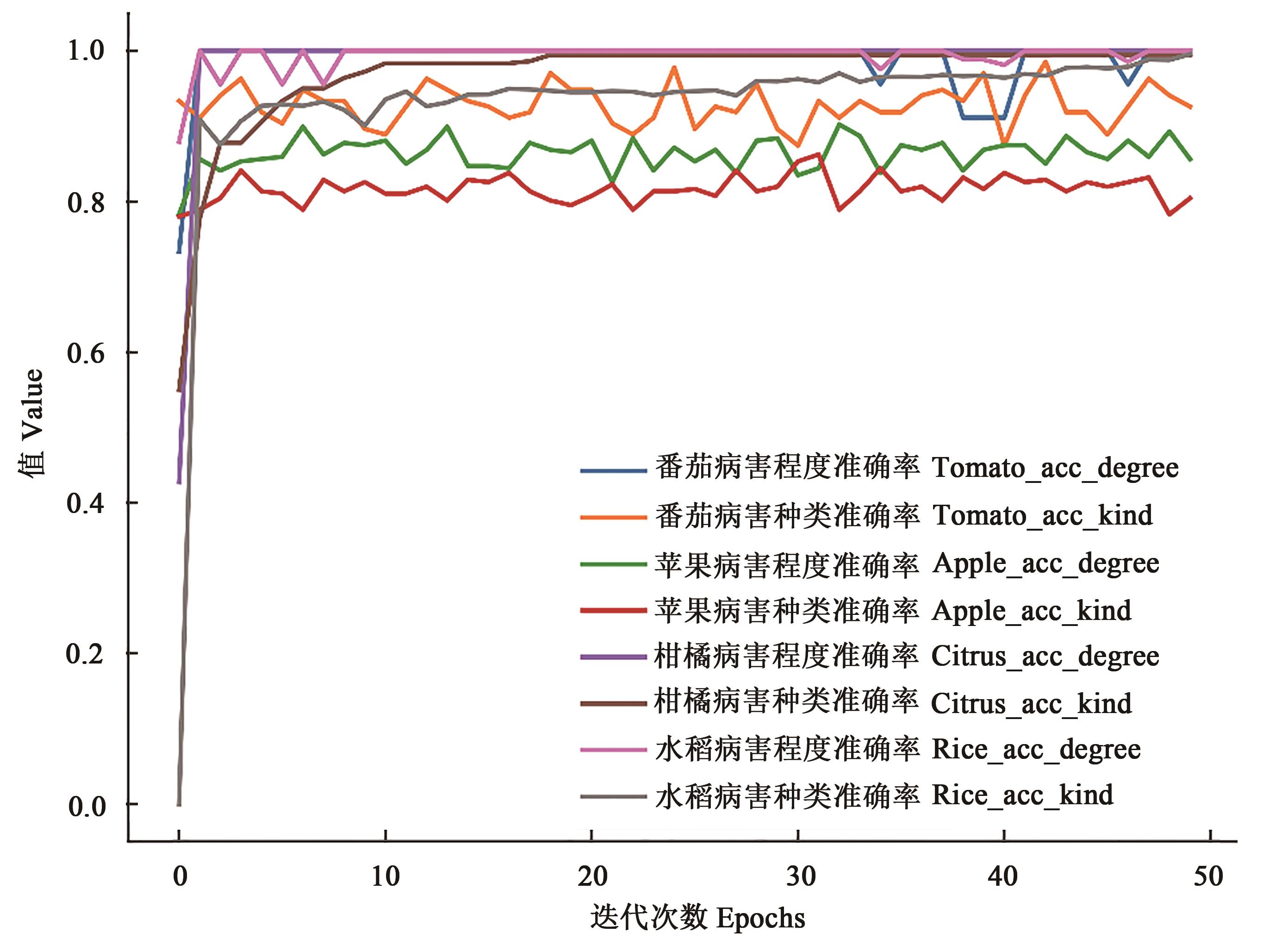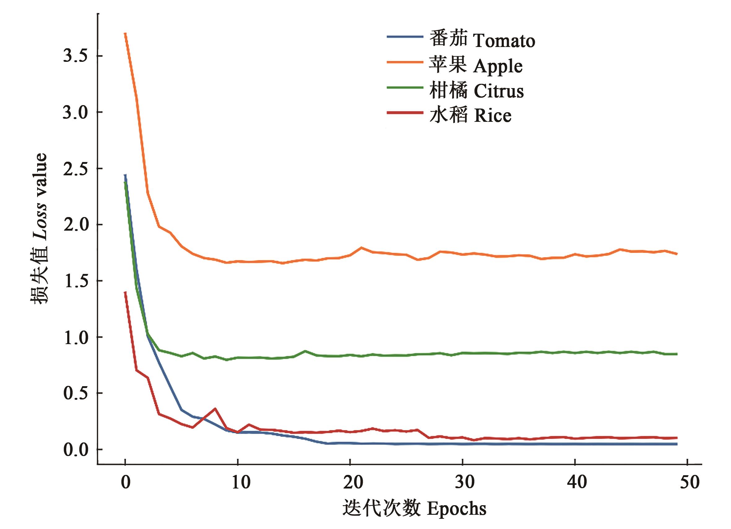 病害是威胁作物生长的主要因素,其特征复杂、变化多样。农业从业人员如缺乏专业知识,往往难以准确识别。以往图像识别方法常针对单一作物,图像分割后提取病害特征进行识别,无法适应多种作物。针对此问题,以水稻、番茄、柑橘、苹果为研究对象,以ResNet模型为基础构建深度学习网络框架,设计了含Squeeze-and-Excitation(SE)模块全新的全连接层,导入在ImageNet上预训练的权重,并在病害数据集上训练得到病害模型。为扩充图像数据,对训练集原图进行了亮度增减、随机旋转与镜面翻转等操作。基于扩充后的训练集进行病害识别和病害程度的分级研究。结果表明,对水稻、番茄、柑橘、苹果平均病害程度识别的准确率为94.16%,平均病害种类识别的准确率为92.45%;并利用训练好的模型基于c#.net core开发了病害监测平台,可实现作物病害的智能识别。