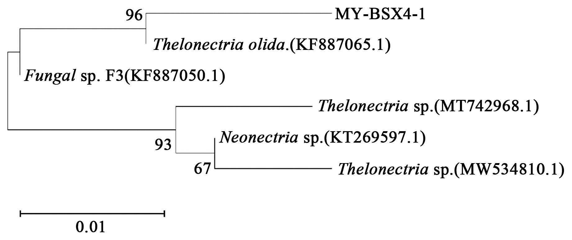 Table 2 Mycelium growth and sporulation of MY-BSX4-1 under different nitrogen source
