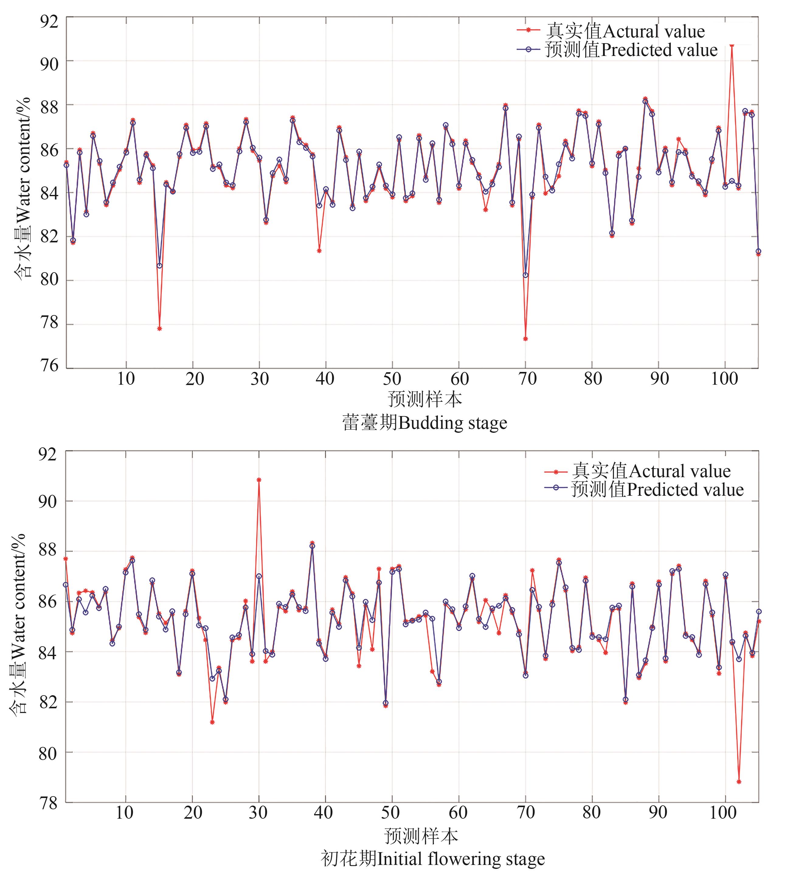 含水率是影响光合作用的重要因素之一,为了构建效果更好、更具普适性的油菜叶片含水量(leaf water content, LWC)定量监测模型,以蕾薹期、初花期油菜叶片为研究对象,采用自然风干法去除叶片水分,同步采集叶片质量和光谱信息。为了降低干扰以及消除噪声,采用标准正态变量变换、Savitzky-Golay卷积平滑算法(SG平滑)、多元散射校正、一阶求导和二阶求导5种方法对光谱数据进行预处理,并结合偏最小二乘法(partial least squares, PLS)分析选取最优预处理方法;采用连续投影算法(successive projections algorithm,SPA)筛选预处理后的光谱特征变量,获得对水分含量变化敏感的特征波长;利用支持向量机(support vector regression, SVR)和BP神经网络(back-propagation neural network, BPNN)方法,以特征波长建立的光谱指数为自变量建立油菜叶片水分含量估算模型。结果表明:采用多元散射校正预处理综合表现最好,2个生育期预测集相关系数均达到0.71以上;通过SPA法选择特征变量,分别筛选出特征波长,其中蕾薹期6个,初花期7个;在蕾薹期和初花期叶片水分含量预测模型中,基于SVR模型和BPNN模型建立的模型预测集决定系数(R2 )均在0.800以上,均能实现油菜叶片水分含量的精准监测,其中SVR模型预测效果优于BPNN模型,R2 分别为0.857和0.827,RMSE分别为1.791和1.521。因此,利用油菜叶片高光谱建模反演油菜叶片含水率能准确监测油菜叶片含水率,可为精准农业水分管理提供理论参考。