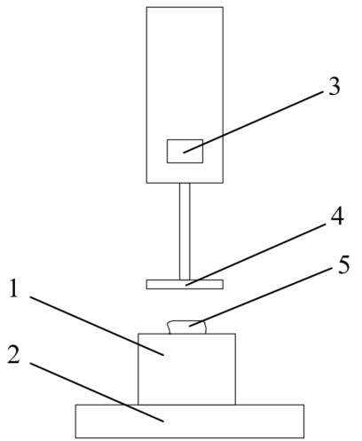 Fig. 1 Pressure testNote:1—Stainless steel round table;2—Base;3—Digital display screen;4—Detection probe;5—Garlic seeds.