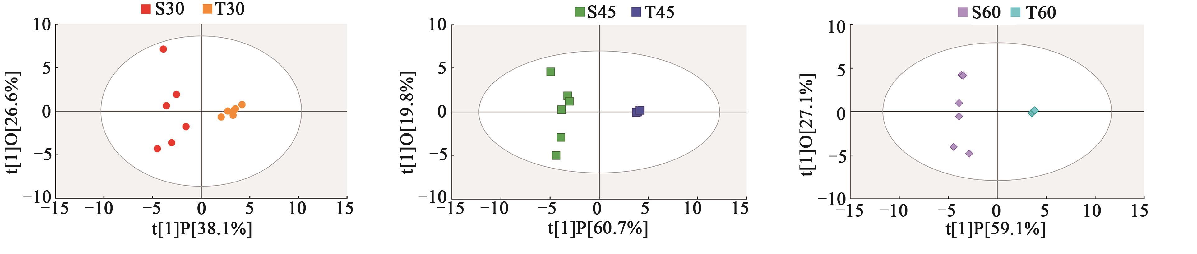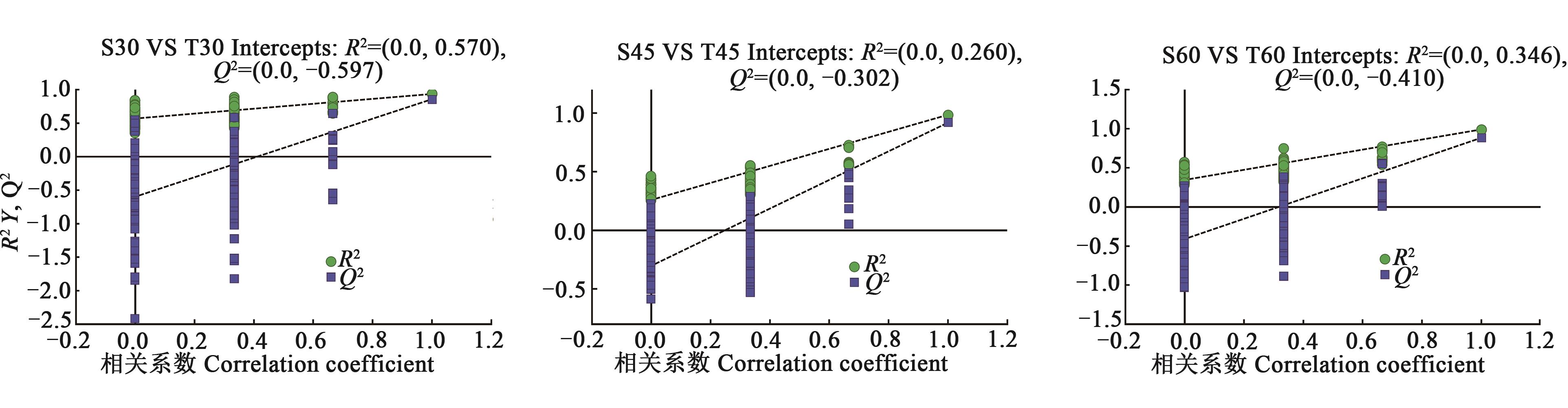 图4 不同生长时期2种培养方式烟草根系分泌物的OPLS-DA模型交叉验证结果