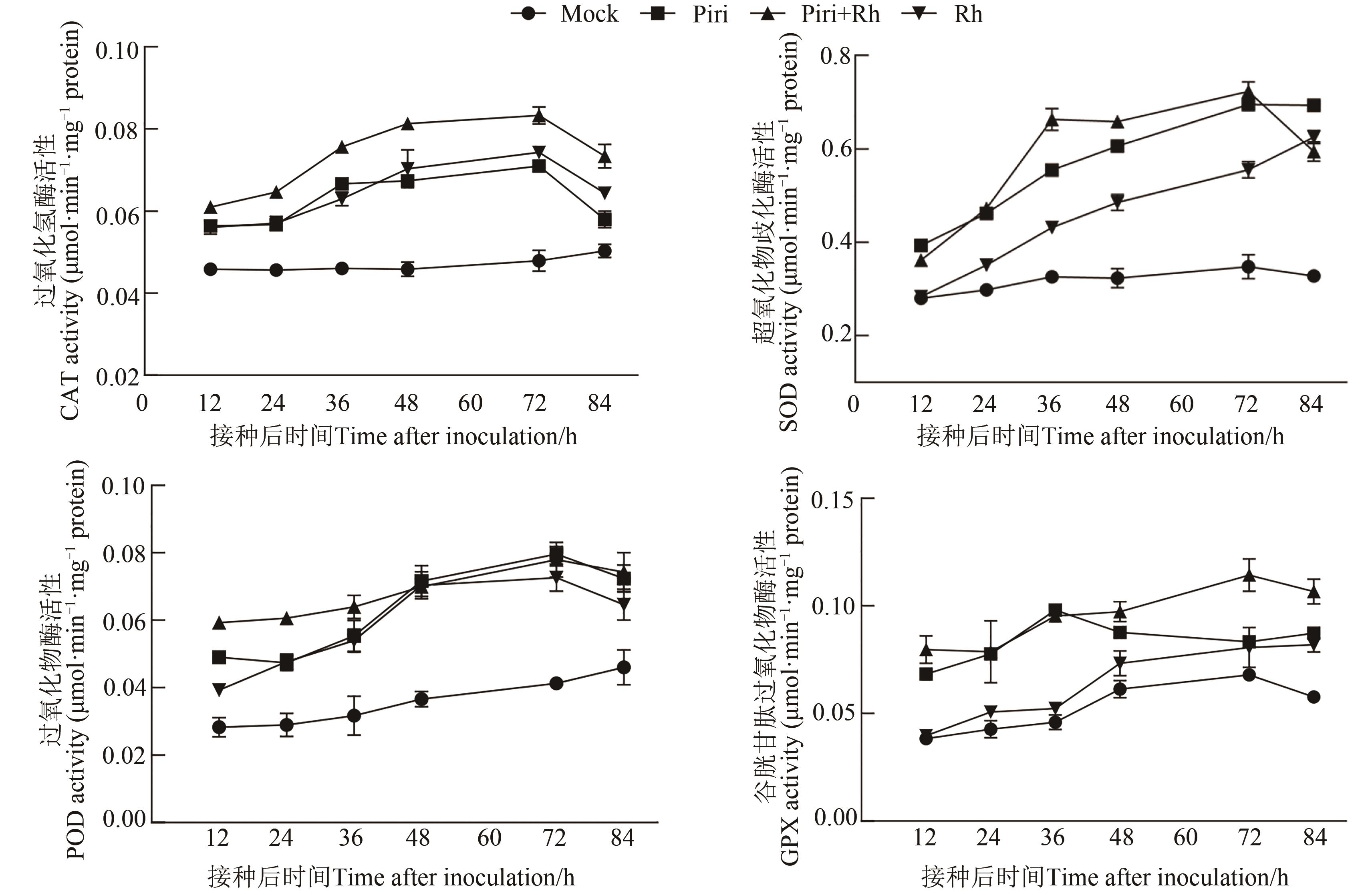 Sharp eyespot of wheat is a frequent soil borne disease worldwide, which has serious harm on stable and high yield of wheat. To clarify the induction effect of Piriformospora indica, an endophytic fungus, on wheat resistance to sharp eyespot and to use a biological method which breaking through the traditional chemical control mode to enhance wheat resistance to sharp eyespot, wheat seeds were soaked in P. indica spore solution, followed by inoculation with Rhizoctonia cerealis, and physiological and biochemical indicators and transcriptome results were analyzed. The results showed that pre-colonization of P. indica in wheat could enhance the activity of antioxidant enzymes, alleviate the reduction of relative water content caused by Rhizoctonia cerealis and increase the membrane stability that partially destroyed by the fungi by 39.6%, and could also raise the content of chlorophyll by 32.3%, improving the photosynthesis ability of wheat. The transcriptome analysis revealed that the colonization of P. indica could restore the transcriptome changes caused by pathogenic fungi, induce the expression of related resistance genes, and improved plant biomass by influencing hormonal metabolic pathways. The resistance of wheat to R. cerealis had been comprehensively promoted by various ways and means. Key genes including TraesCS1A02G372300 and TraesCS1B02G393100 etc had been screened based on the transcriptome data, which would provide theoretical and experimental basis for catching on the kernal layer of plant-microbe interaction and acceleration of the breeding work related to disease resistance and yield increase.
