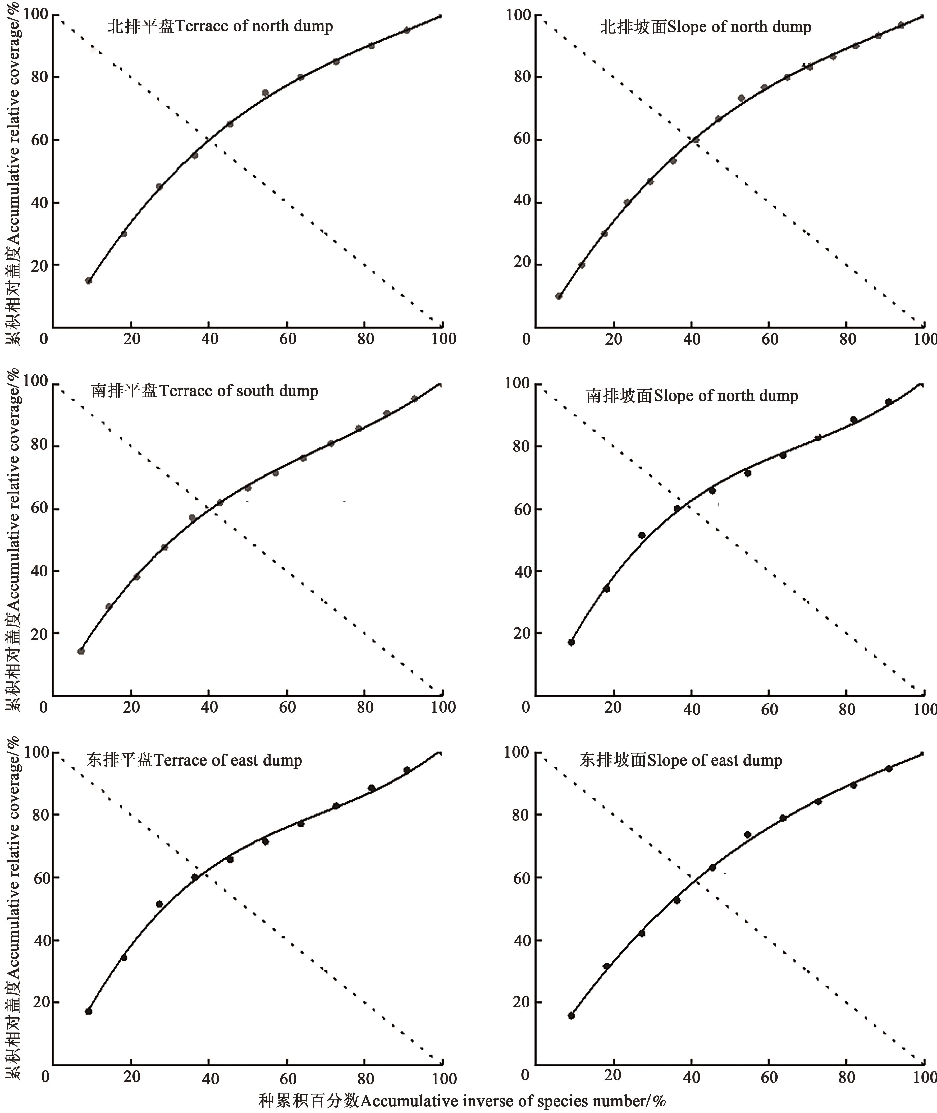 南排土场 Dump of south | 平盘 Terrace | 0.679±0.245 c | 1.174±0.719 c | 0.554±0.352 c | 0.574±0.322 c |