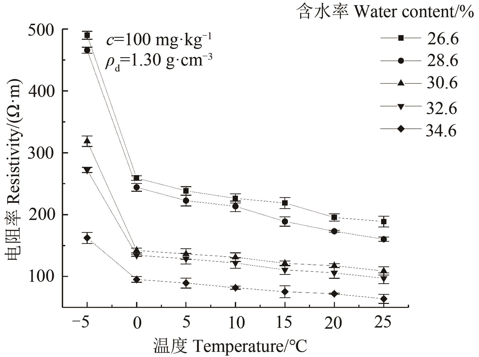 Fig. 2 Laterite resistivity changes with moisture content under different cadmium contents