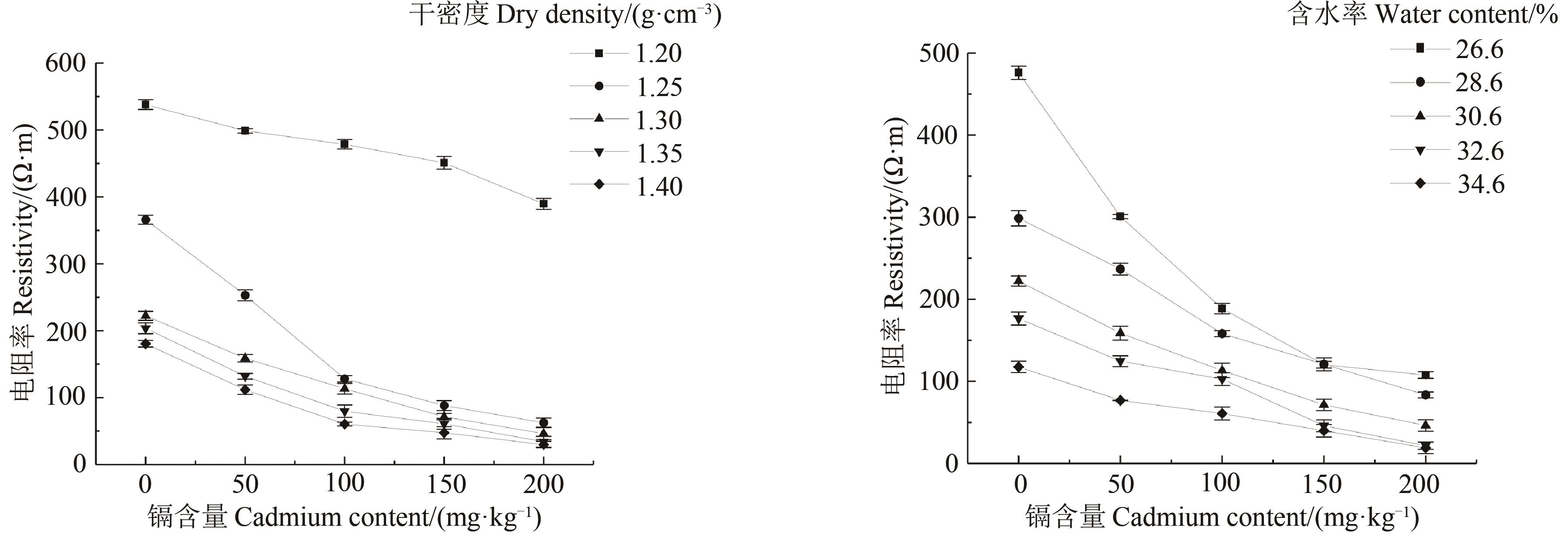 Fig. 1 Laterite resistivity changes with dry density under different cadmium contents