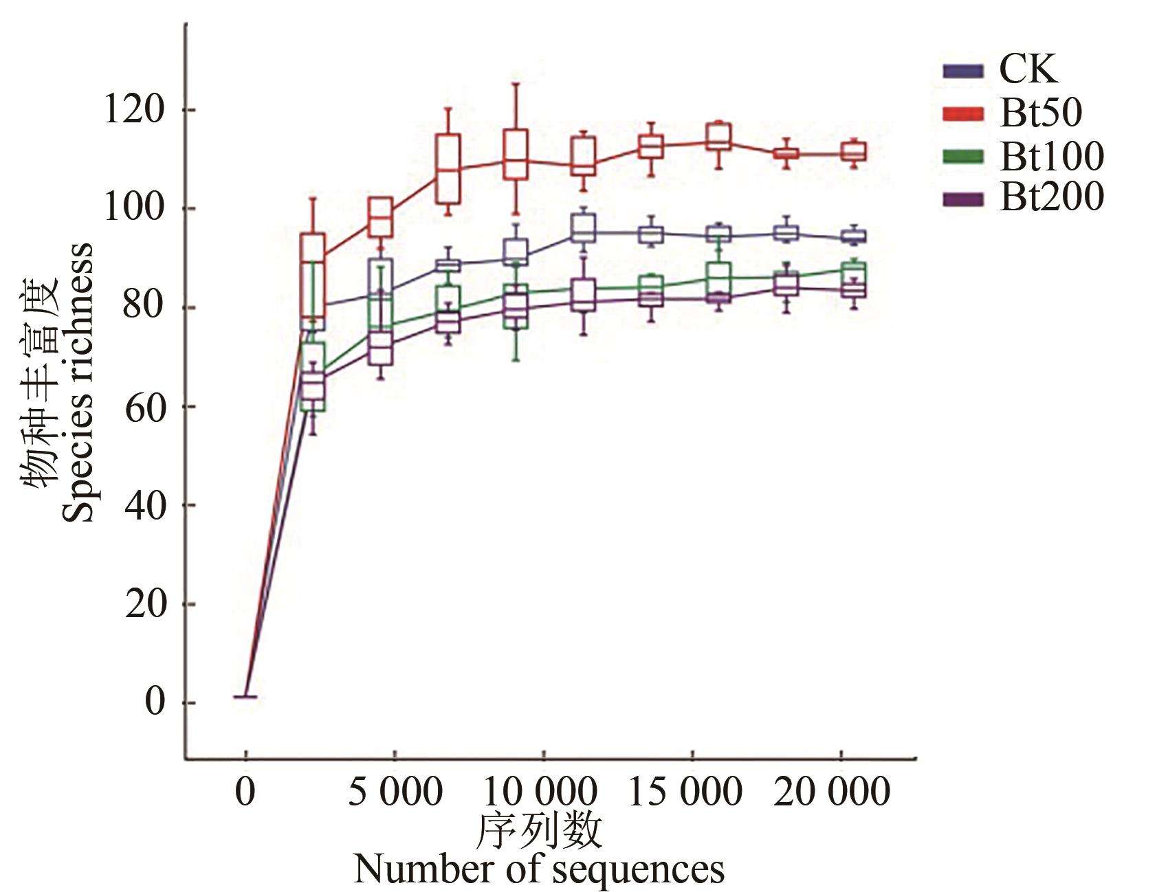 表1 不同 Bt处理下茶尺蠖幼虫肠道细菌的组成