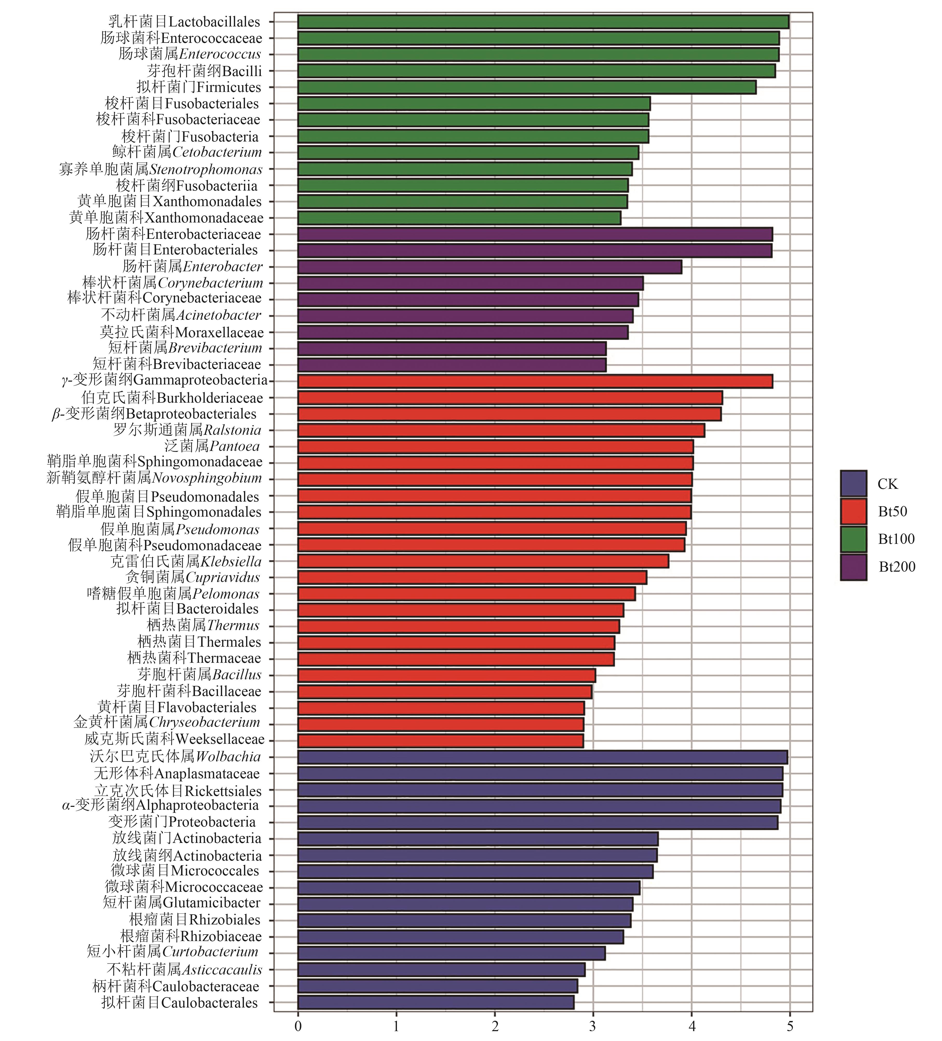 Table 1 Composition of intestinal bacteria in E. oblique larvae under different Bt treatments