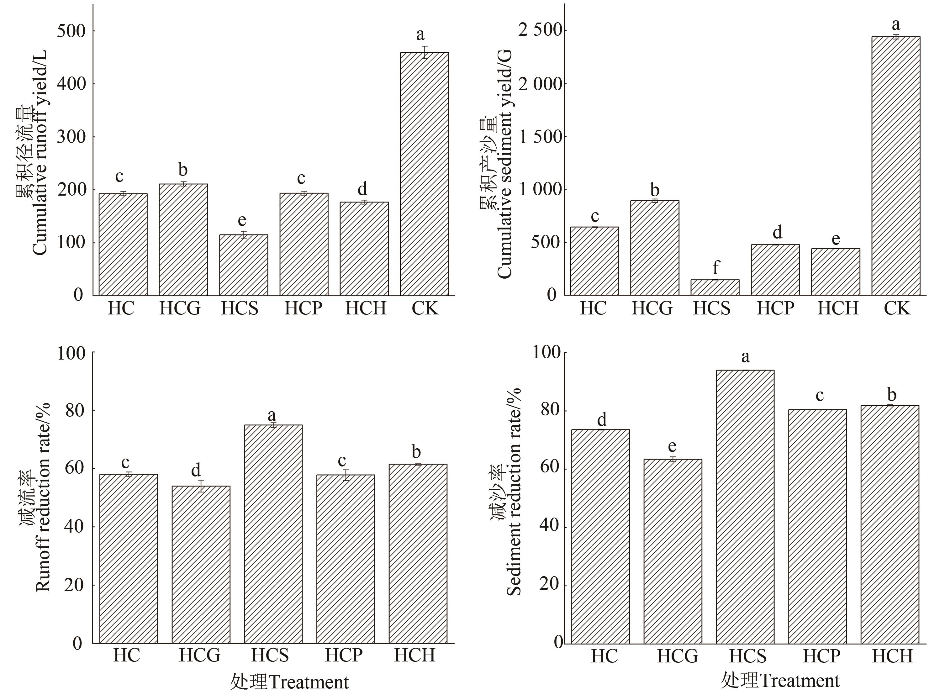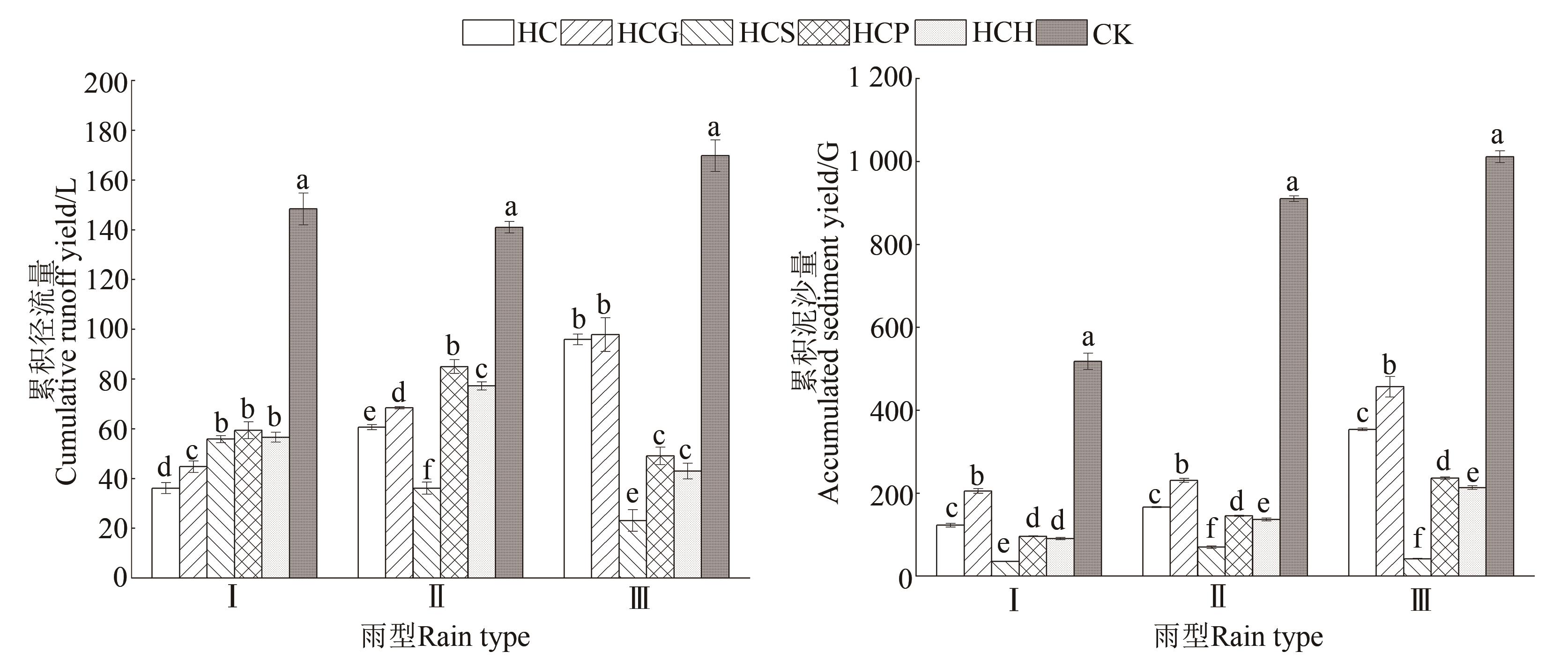 为分析典型草原矿区排土场边坡不同治理模式的径流和产沙特征,以锡林郭勒盟贺斯格乌拉南露天煤矿为研究对象,设置混草(HC)、混草+灌木(HCG)、混草+菱形网格整地(HCS)、混草+品字形整地(HCP)、混草+行带状整地(HCH)、裸坡(CK)6种处理,运用K-均值聚类法,划分研究区降雨类型,结合径流小区2021—2023年15场天然降雨的径流、产沙数据,分析不同治理模式的产流产沙特征及其对降雨的响应。结果表明,以降雨历时、降雨量和降雨强度为特征指标,侵蚀性降雨可分为3种类型,其中雨型Ⅰ表现为历时短、降雨量小、降雨强度大;雨型Ⅱ表现为历时中、降雨量中、降雨强度中;雨型Ⅲ表现为历时长、降雨量大、降雨强度小。各类型治理措施的累积径流量随着降雨类型的变化并无统一规律,其中,HC处理在雨型Ⅰ时的径流量最少,为36.15 L;HCS处理在雨型Ⅱ、Ⅲ时的径流量最少,分别为36.14、23.15 L。在单一植被措施下,HC处理的累积径流量和产沙量显著低于HCG处理;在复合模式下,HCS处理的径流量和产沙量显著低于其他处理。总体而言,各治理措施的多年累积径流量、产沙量呈现为HCS<HCH<HCP<HCG<HC<CK。降雨量是影响径流量与产沙量最显著的降雨指标,不同治理处理的径流量、产沙量对各降雨参数的响应特征不同。减流、减沙效果最好的HCS处理,受降雨影响最小,CK的径流量和产沙量受降雨影响最大。以上结果表明,布设治理措施均可有效防治排土场边坡的水土流失问题,其中布设混草+菱形网格整地措施的减流、减沙效果最优。