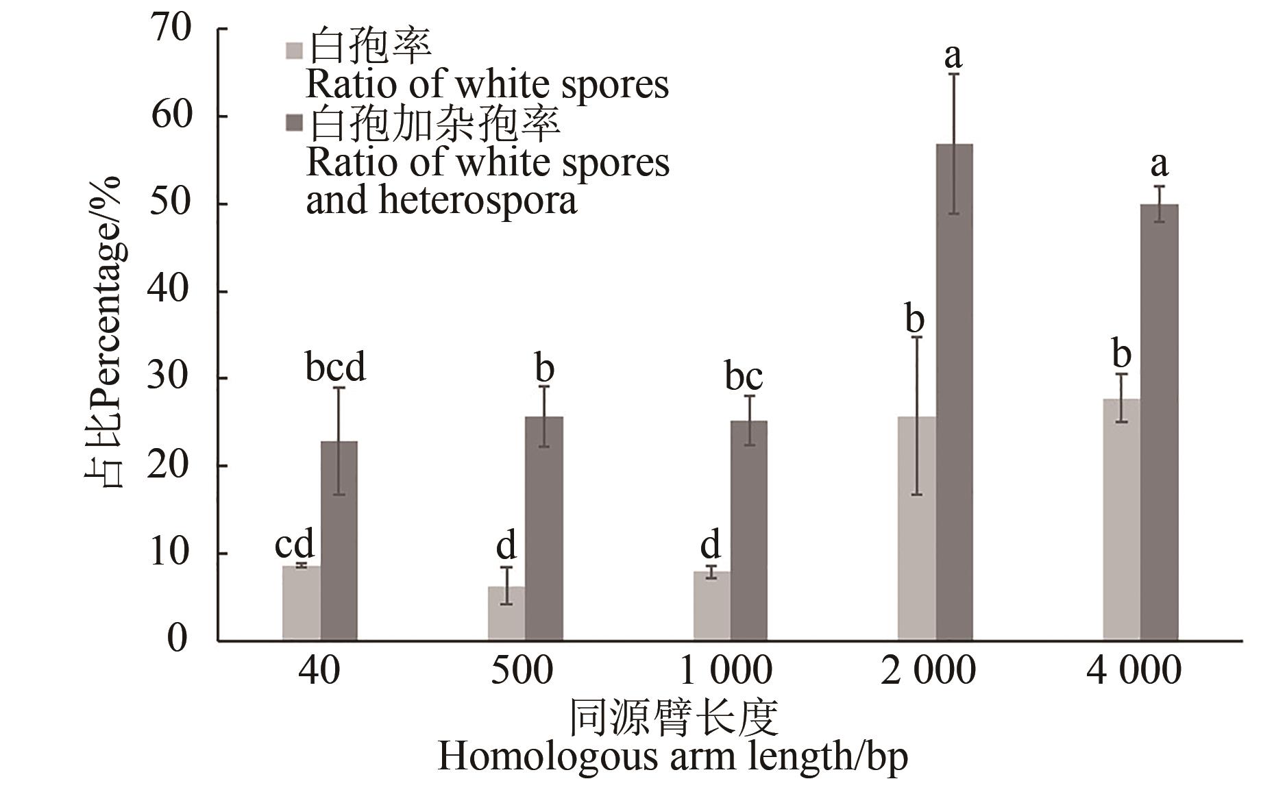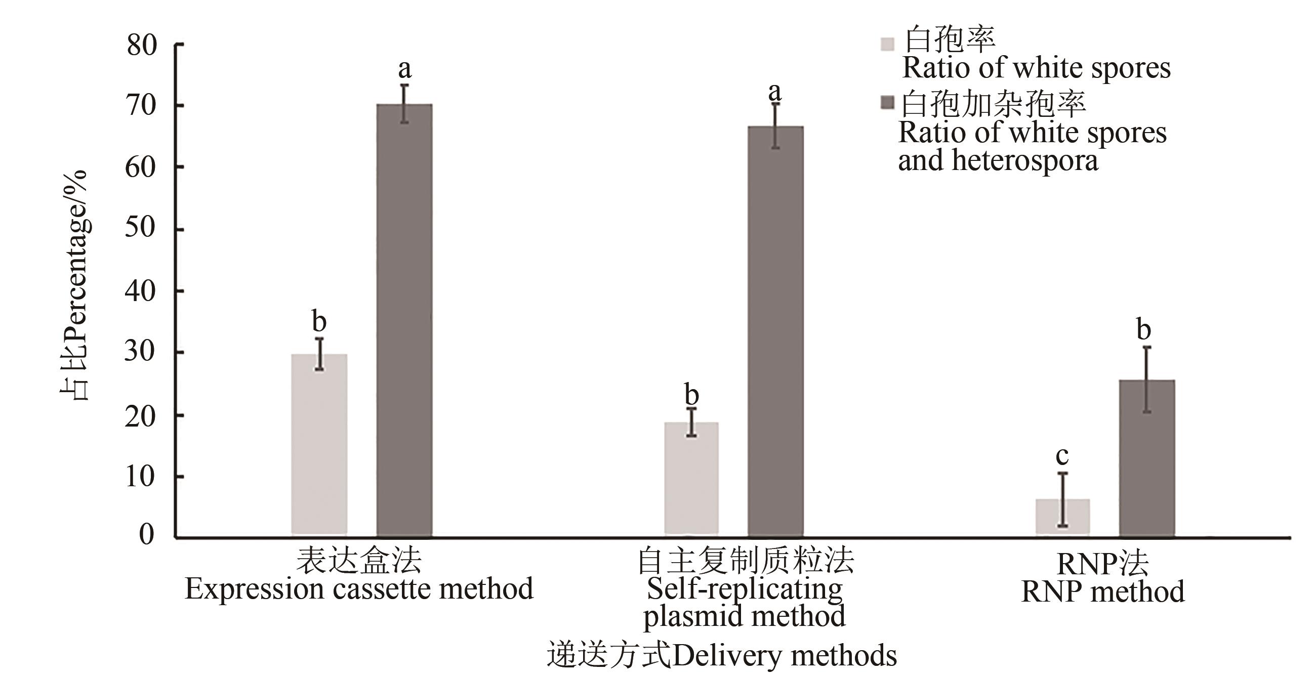 塔宾曲霉是一种丝状真菌,在饲料、食品、生物防治、环境修复等领域都有广泛的应用前景。通过形态学观察结合分子检测和Ehrlich试剂染色法,成功地鉴定了1株塔宾曲霉,将其命名为F316。为探索适合F316的基因编辑方法,便于基因工程改造,应用CRISPR/Cas9系统,在F316的孢子色素合成相关基因fwnA的内部插入潮霉素抗性基因,通过孢子颜色统计和抗性基因PCR验证,比较不同基因编辑元件的递送方式对同源重组效率的影响。结果表明,在F316菌株中,表达盒法、自主复制质粒法和核糖核蛋白复合体法3种不同递送方式的同源重组效率分别为70.14%、66.67%和25.70%;另外,供体DNA中同源臂的长度对同源重组效率也有影响,当同源臂长度为2 000 bp时,重组效率最好。