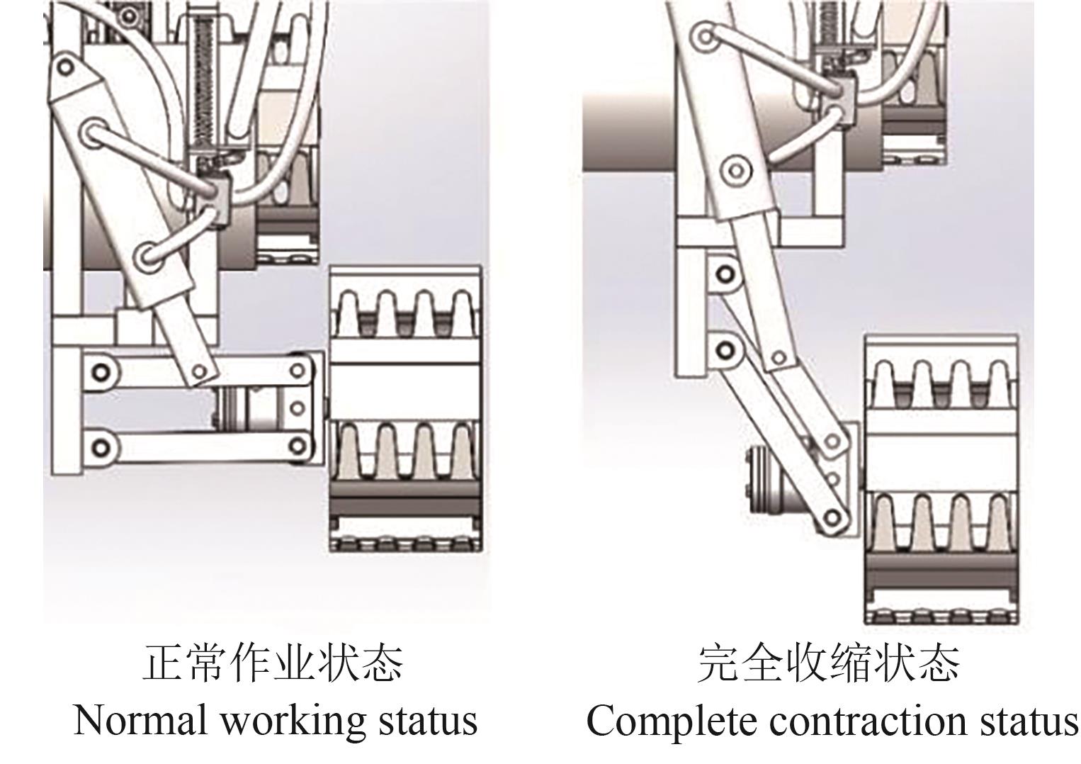 针对果园树干间杂草难去除的问题设计了一种果园中耕避障除草机,包括行间除草机构、株间除草机构、液压避障组件等,可实现行间和株间的中耕除草作业,通过触式弹簧避障杆联动液压缸驱动四连杆机构,实现株间除草机构的避障。利用EDEM软件以除草轮的转速、入土深度、行进速度为指标进行3因素3水平正交仿真试验和作业参数优化,最佳参数组合为:除草轮转速500 r·min-1、入土深度80 mm、前进速度1.2 m·s-1。样机田间试验表明,其除草作业的避障通过率100%,漏耕率3.44%,损伤率0%,平均耕深为80.9 mm,耕深稳定性系数为97.8%,生产率为0.86~1.38 hm2·h-1。研究结果可为果园中耕避障除草机设计提供参考。