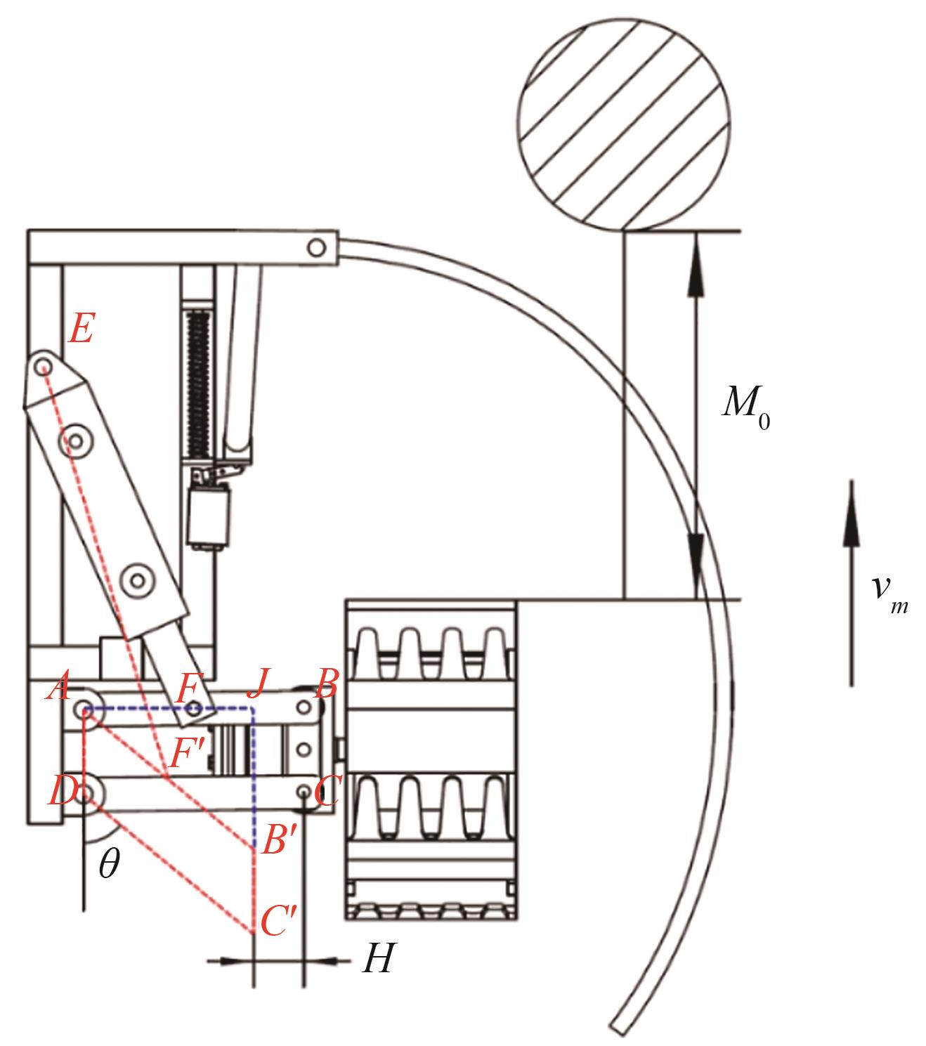 An orchard obstacle avoidance inter-row weeding cultivator was designed to address the problem of difficult weed removal between the tree trunks in the orchard, which mainly included inter-row weeding mechanism, intra-row weeding mechanism, hydraulic obstacle avoidance components, and could achieve inter-row and intra-row cultivating and weeding operations. The obstacle avoidance of the intra-row weeding mechanism was achieved by the linkage of the touch spring obstacle avoidance rod and the hydraulic cylinder-driven four-bar linkage mechanism. Using EDEM software, three-factor three-level orthogonal simulation experiments and operational parameter optimization were conducted with weeding wheel rotation speed, soil tillage depth and forward speed as indicators. The optimal parameter combination was found as follows: the weeding wheel rotation speed of 500 r·min-1, the soil tillage depth of 80 mm, and the forward speed of 1.2 m·s-1. Field experiments of the prototype were conducted, with a weed avoidance rate of 100%, a missed tillage rate of 3.44%, no damage, an average tillage depth of 80.9 mm, a tillage depth stability coefficient of 97.8%, and a productivity ranging from 0.86 to 1.38 hm2·h-1. Above results could provide reference for the design of obstacle avoidance and weeding machines in orchards.