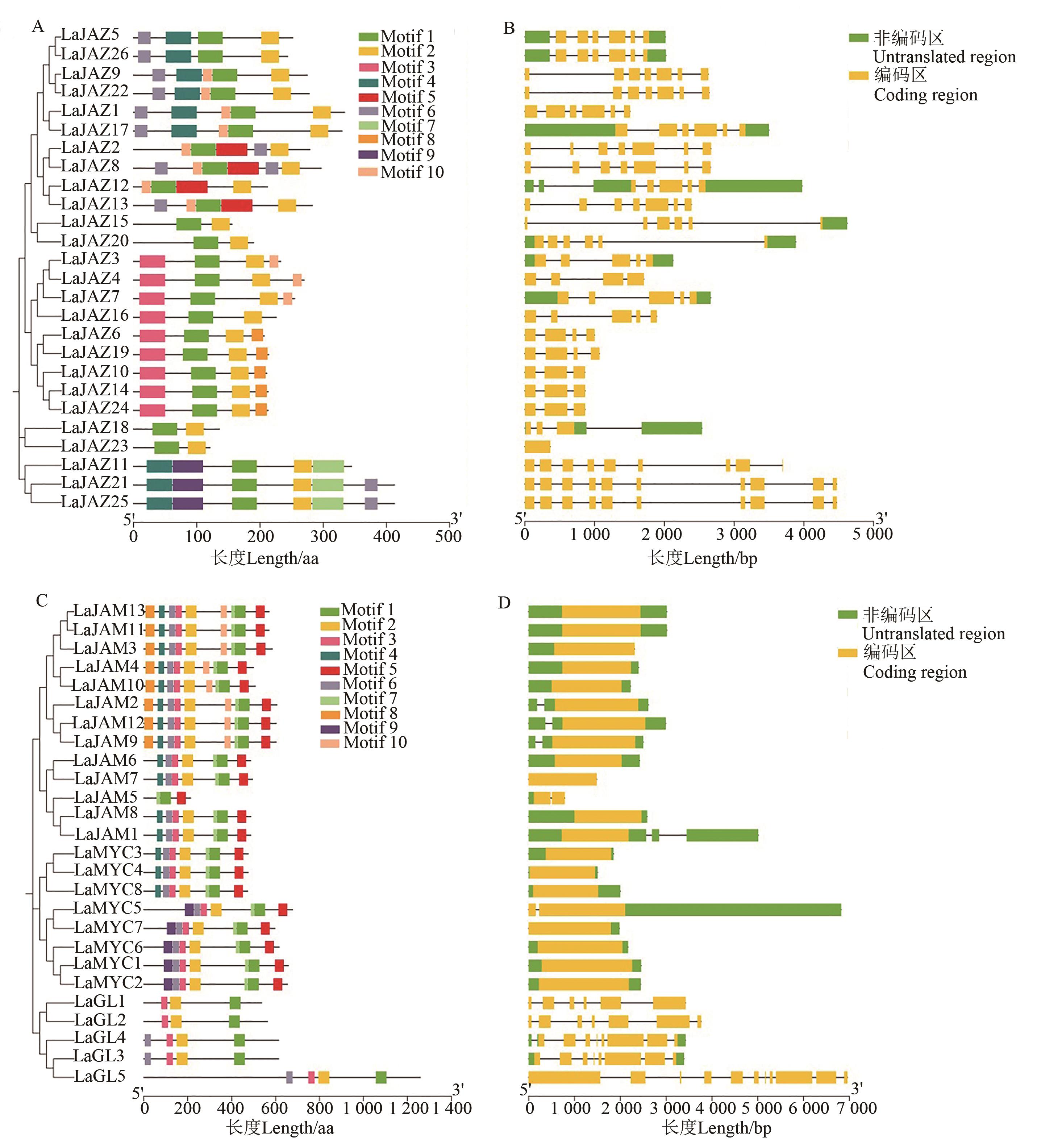 关键词: 薰衣草, JAZ家族, MYC2-like家族, 生物信息学, 表达模式, MeJA