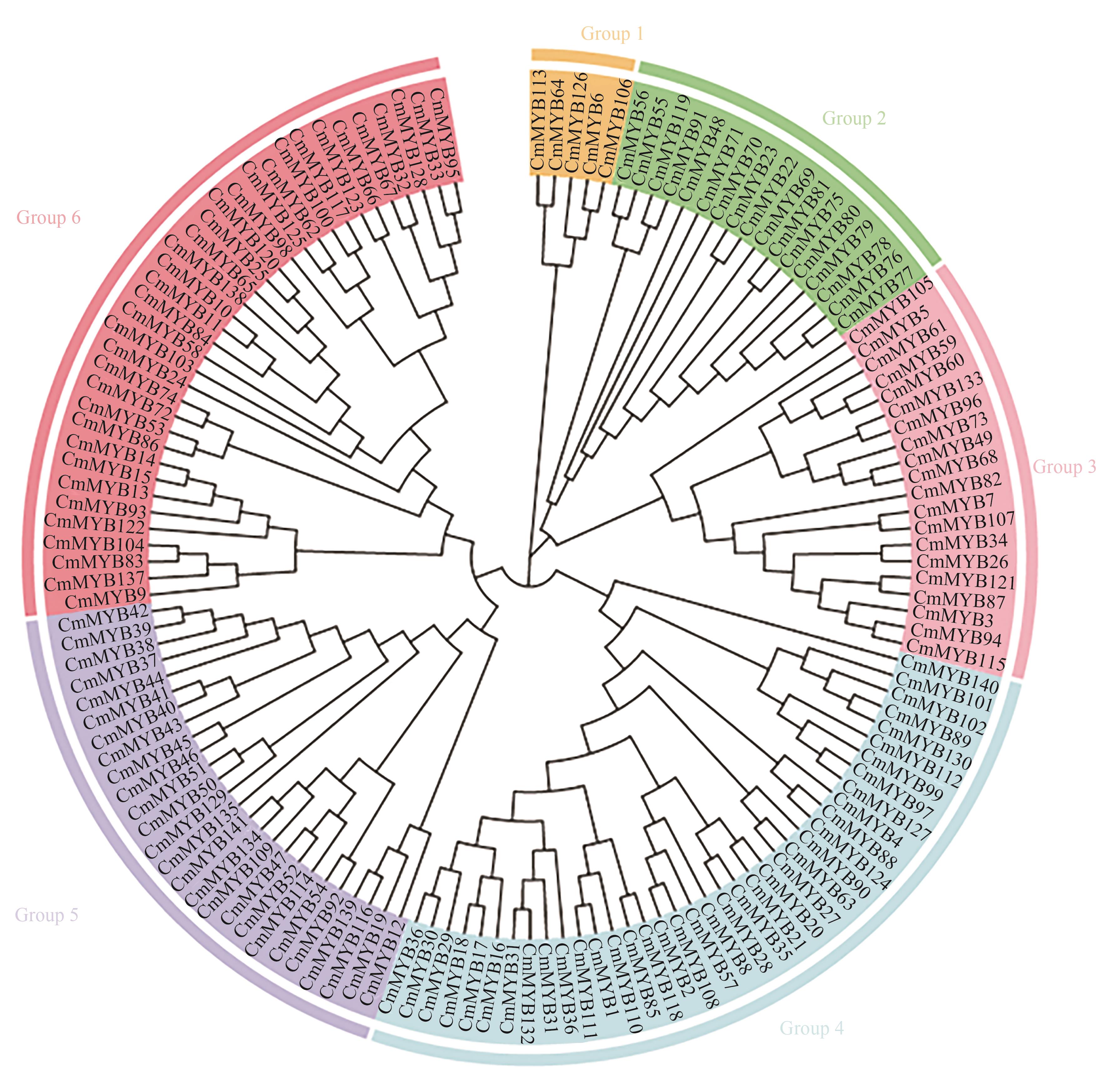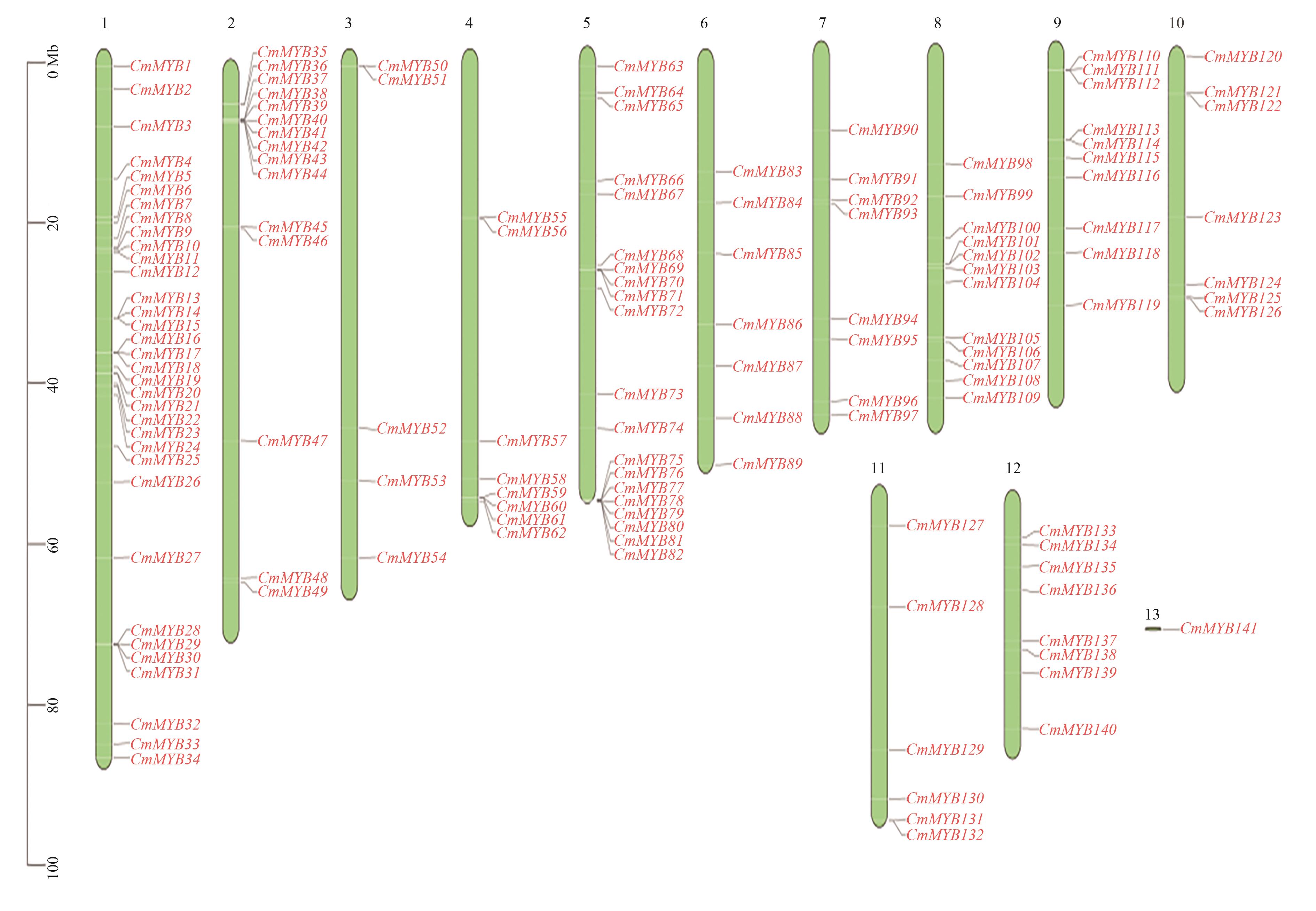 R2R3-MYB转录因子是植物中最大的MYB亚家族,广泛参与调节植物生长发育和胁迫响应。对板栗R2R3-MYB基因家族进行全基因组鉴定,分析其在染色体上分布、亚细胞定位、系统进化关系、蛋白基序、基因结构、保守结构域,最后通过转录组和RT-qPCR分析CmR2R3-MYB基因在干旱胁迫下的表达。结果表明,共鉴定出141个CmR2R3-MYB基因,不均等地分布于12条染色体与1条contig片段。系统进化树将其分为6个亚家族。有7个CmR2R3-MYB基因在干旱胁迫下差异表达,其中CmMYB89表达量上调,CmMYB32、CmMYB95、CmMYB91、CmMYB119、CmMYB131及CmMYB104表达量下调,表明这些基因可能与板栗抗旱性密切相关。以上研究结果为进一步探究R2R3-MYB基因家族在板栗响应干旱胁迫方面的作用奠定了理论基础。