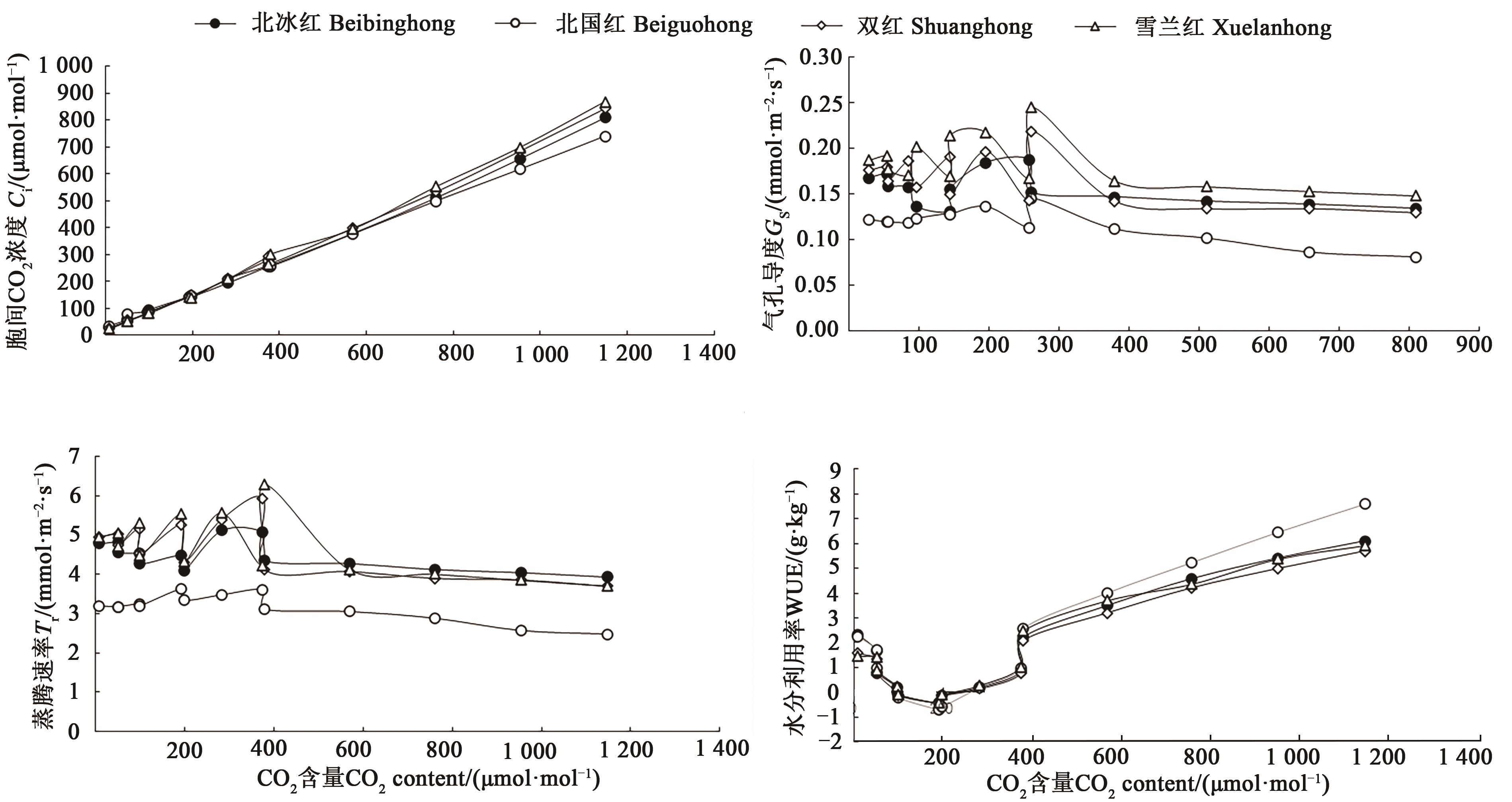北国红 Beiguohong | 初始羧化效率ƞ | 0.040 5 | 0.040 5 | 0.036 2 | — |
