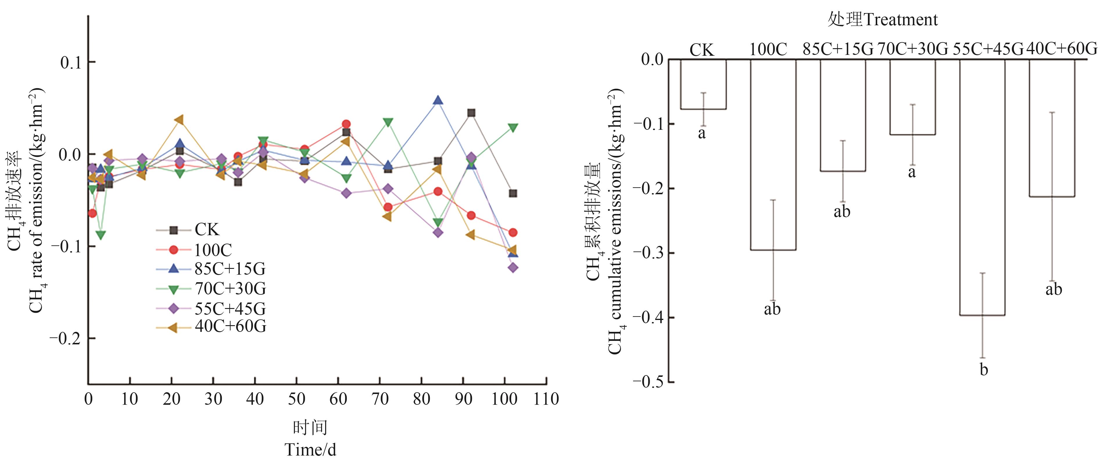 为研究西北灌区最佳绿肥替代氮肥比例,设置不施肥、当地传统施肥、85%氮肥氮+15%绿肥氮、70%氮肥氮+30%绿肥氮、55%氮肥氮+45%绿肥氮和40%氮肥氮+60%绿肥氮共6个处理,采用静态暗箱-气相色谱法监测小麦生育期土壤温室气体排放,对麦田温室气体和土壤全氮含量进行分析。结果表明,随着绿肥替代量增加,相比较当地传统施肥各绿肥处理N2O排放通量逐渐减少,土壤全氮含量逐渐增加,绿肥处理N2O排放通量均显著低于当地传统施肥,其中以40%氮肥氮+60%绿肥氮处理最低,比当地传统施肥减少39.2%,各处理均为CH4的“汇”,55%氮肥氮+45%绿肥氮处理吸收量最高,结合2023年小麦产量数据,70%氮肥氮+30%绿肥氮处理产量最高,为4 136 kg·hm-2,70%氮肥氮+30%绿肥氮处理全球增温潜势较当地传统施肥显著降低30.6%。由此可见,绿肥替代30%氮肥处理效果最佳,具有较高的经济效益和友好的环境效应。研究结果为当地农民科学环保施用肥料提供理论依据。