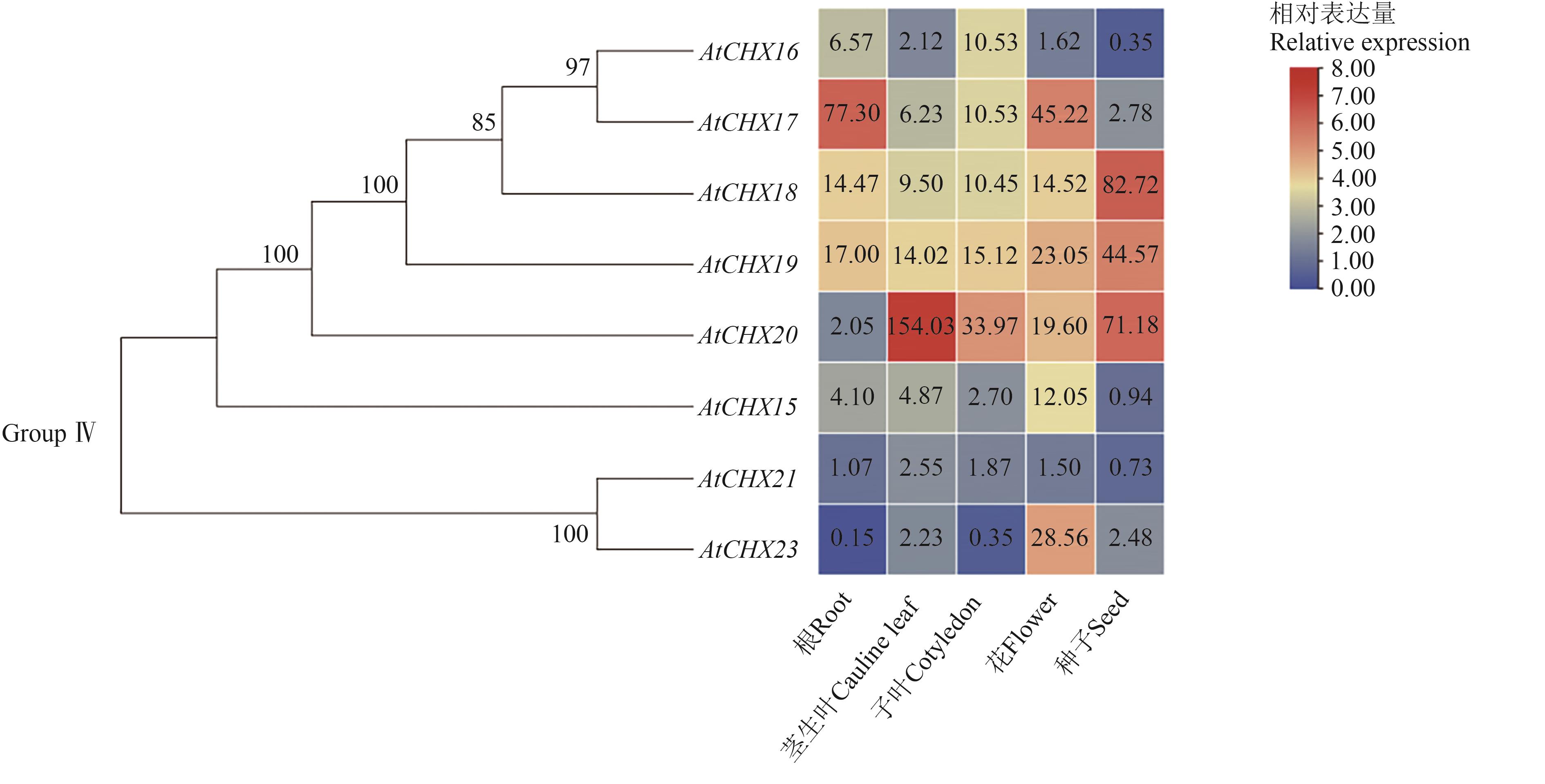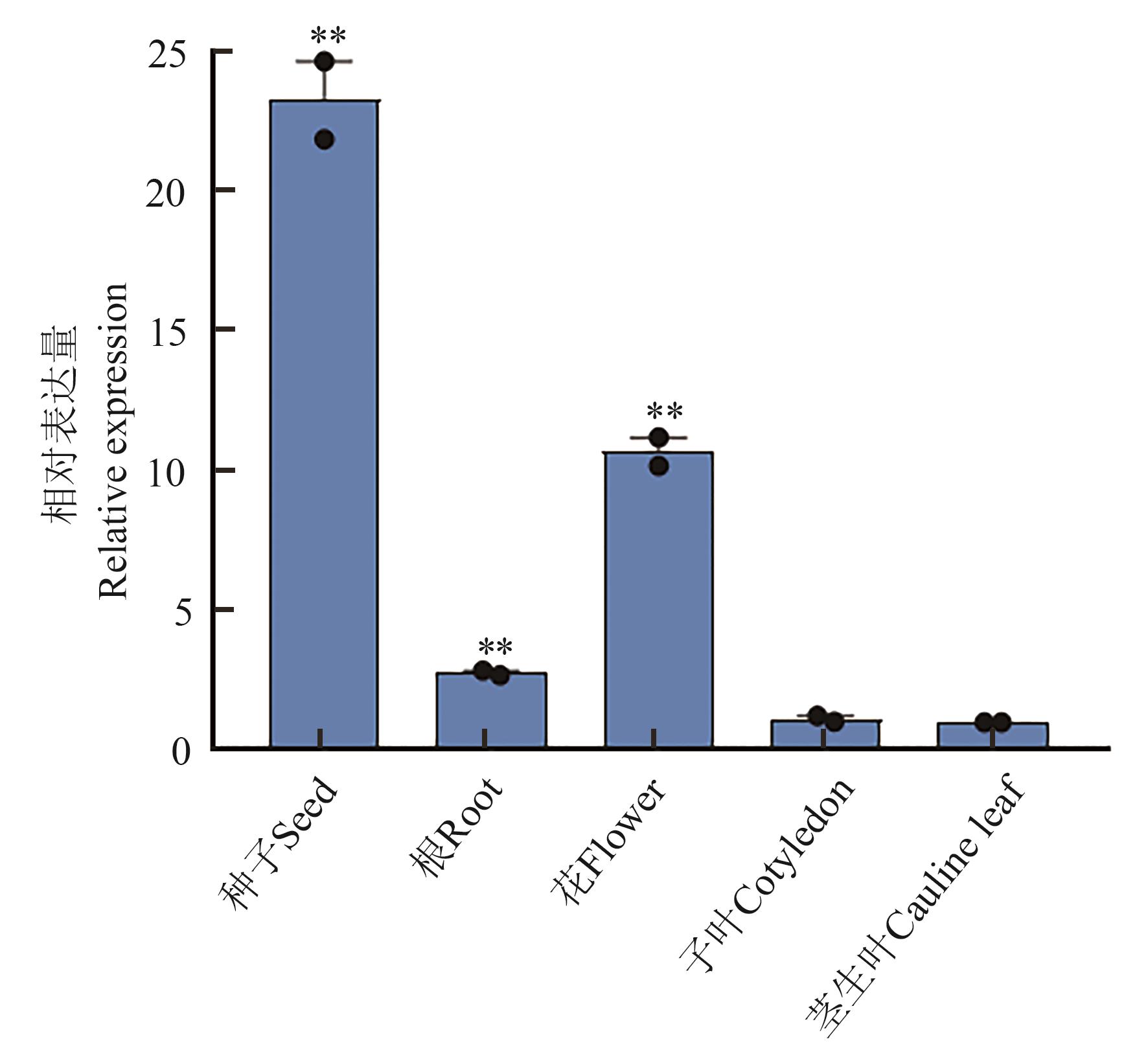 Fig. 6 Expression of AtCHX19 gene in different organs of Arabidopsis thalianaNote: ** indicates significant at P<0.01 level.