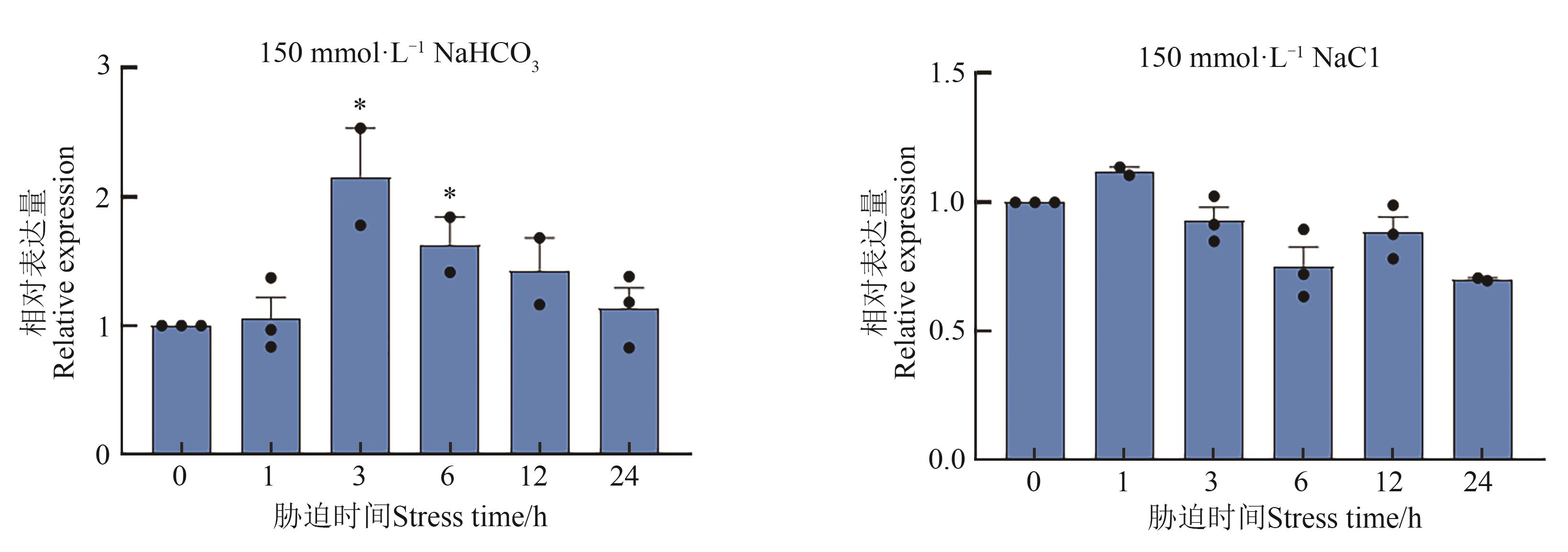 Fig. 7 Quantitative real-time PCR analysis of expression of AtCHX19 gene under different stress treatmetnsNote: * indicates significant difference compared with the expression of 0 h at P<0.05 level.