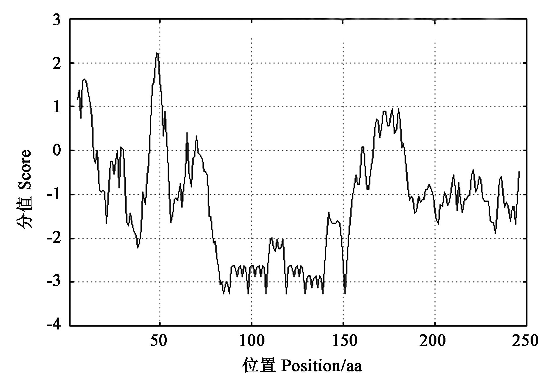 Fig.2 Prediction of transmembrane domain and signal peptide in GhPKE1 proteinA: Transmembrane domain analysis of GhPKE1 protein; B: Signal peptide prediction of GhPKE1 protein