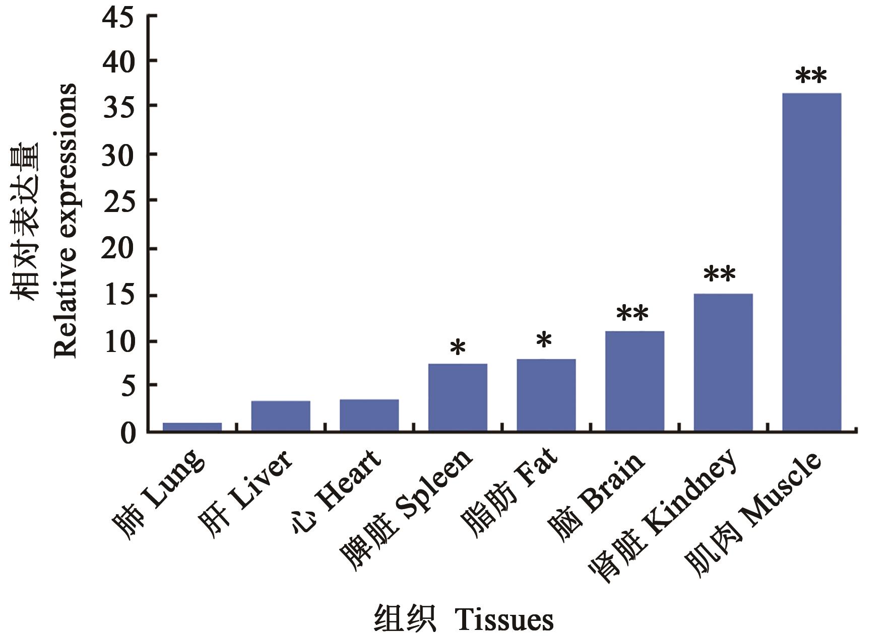 Fig. 2 Expression of FAT1 in different tissuesNote:* and ** indicate significant differencs at P<0.05 and P<0.01 levels respectively compared with lung tissue.