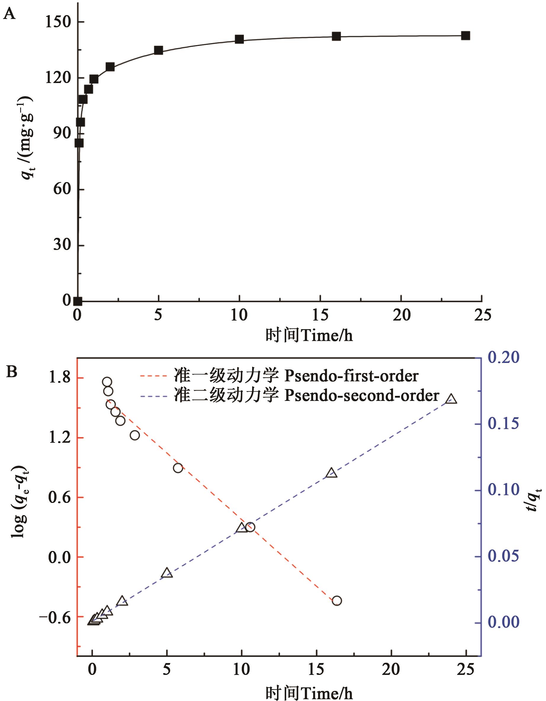 k1/(g·mg-1·min-1) | 理论平衡吸附量qe,cal/(mg·g-1) | 决定系数R2 | k2/(g·mg-1·min-1) | 理论平衡吸附量qe,cal/(mg·g-1) | 决定系数R2 | |