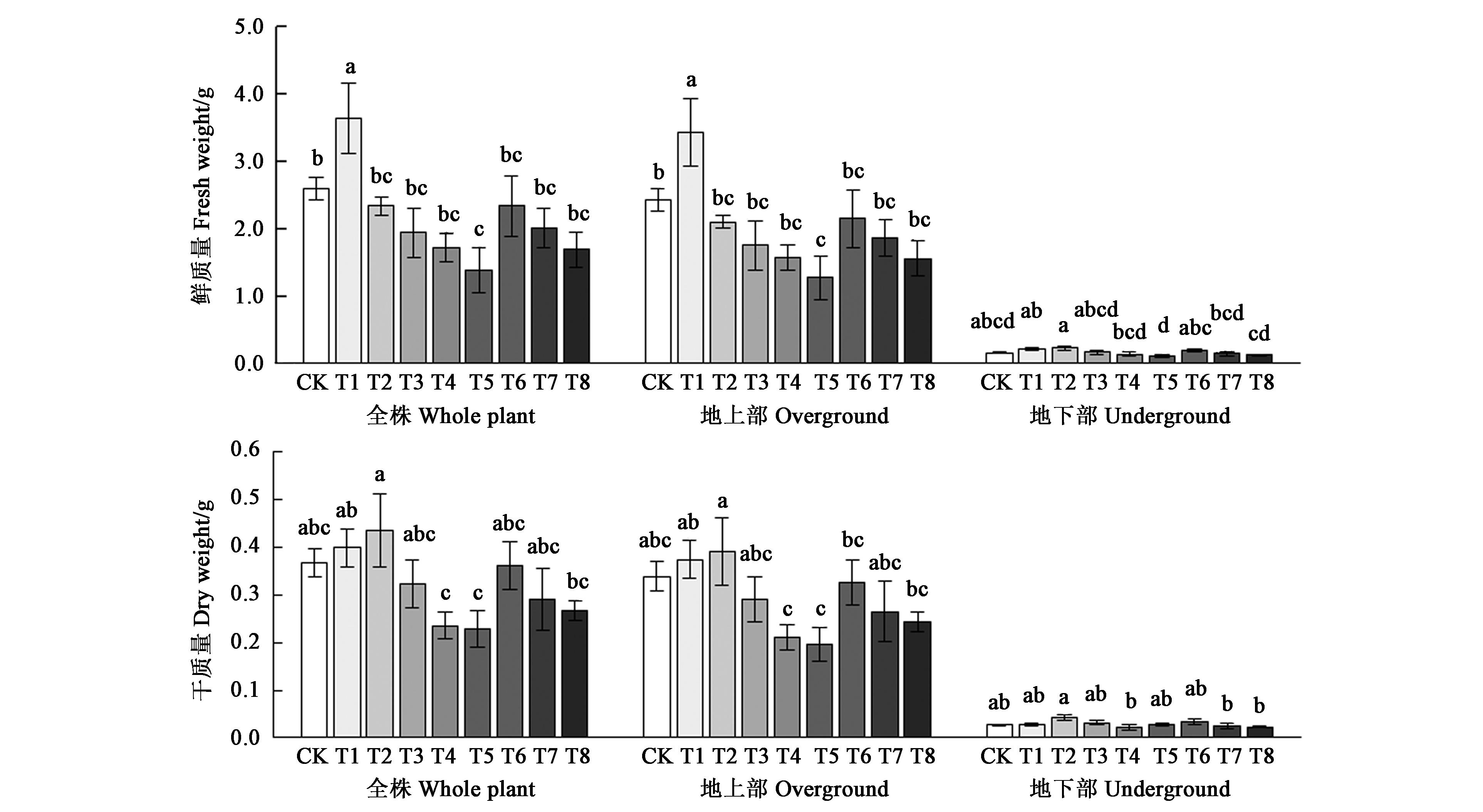 地上部鲜质量Overground fresh weight | 0.097 | -0.082 | 0.139 | 0.041 | -0.087 | 0.116 |