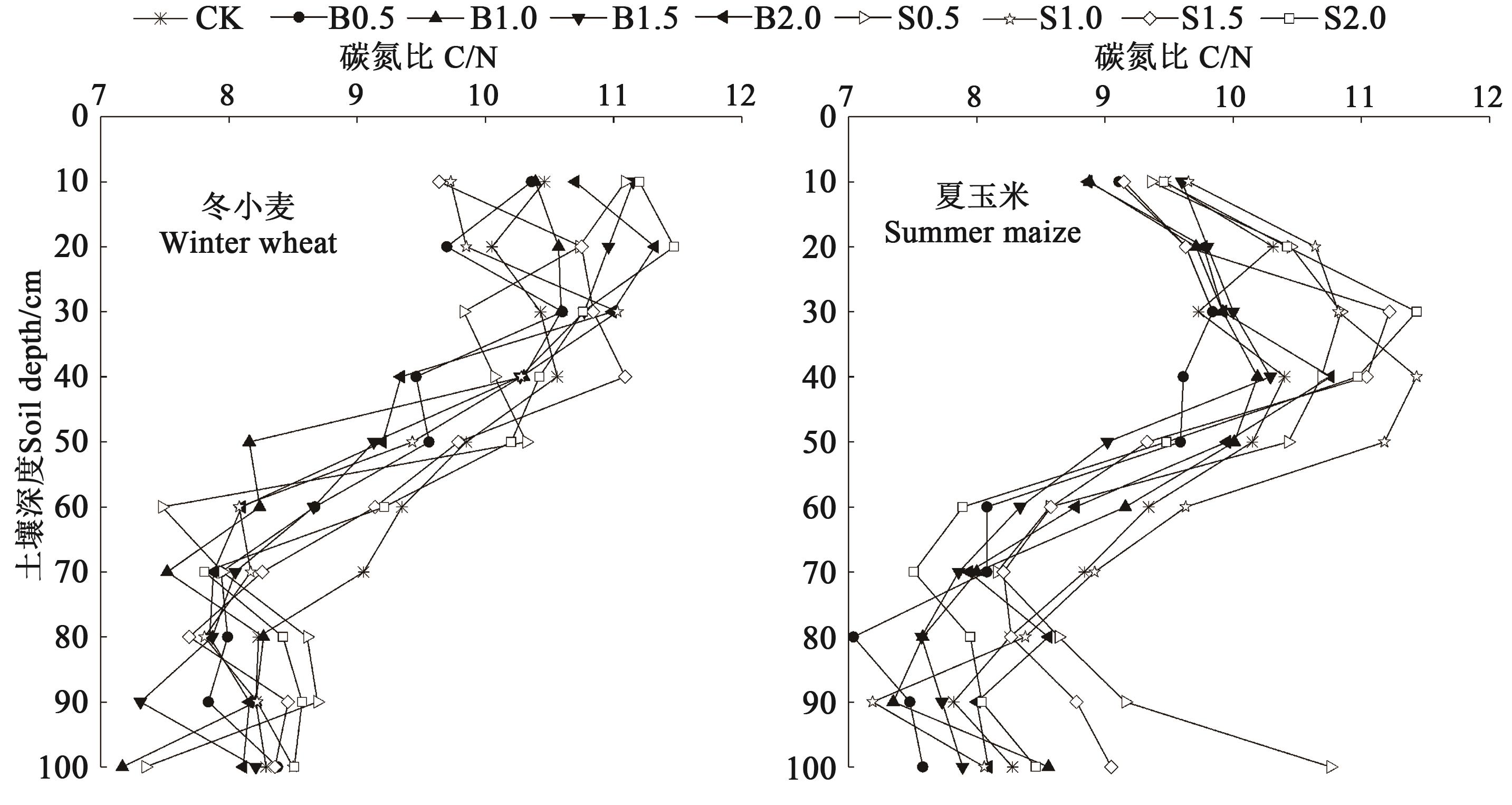 为探讨生物炭和秸秆在石灰性潮土区对麦玉轮作系统的影响,采用冬小麦季玉米秸秆还田-夏玉米季小麦秸秆不还田的单季还田模式,按照观测小区内实际平均玉米秸秆干物质量进行倍数施用,设置玉米秸秆0.5(S0.5)、1.0(S1.0)、1.5(S1.5)和2.0倍(S2.0)还田,以及将等量玉米秸秆全部转化为生物炭进行施用(B0.5、B1.0、B1.5、B2.0),以无生物炭和秸秆的处理为对照(CK),测定不同处理下的土壤养分及作物产量。结果表明,生物炭和秸秆还田处理对冬小麦、夏玉米两季的土壤全效以及速效养分具有一定的促进作用,整体上在冬小麦季对土壤养分的改善及碳氮比的提升效果优于夏玉米季。在冬小麦季,生物炭和秸秆还田处理的小麦籽粒产量较对照分别显著增加9.04%~21.76%和15.31%~22.96%;在夏玉米季,B0.5、S1.0、S1.5、S2.0处理的玉米籽粒产量较对照分别显著增产10.86%、8.72%、10.89%、12.22%。整体上施用生物炭和秸秆对冬小麦的增产效果高于夏玉米,且以秸秆还田处理的增产效果更优。因此,在鲁西平原石灰性潮土区正常施肥的基础上,在冬小麦季施加0.5倍玉米秸秆炭化的生物炭或1.0倍玉米秸秆不仅有利于提高土壤肥力,还可以增加冬小麦、夏玉米两季作物的籽粒产量。