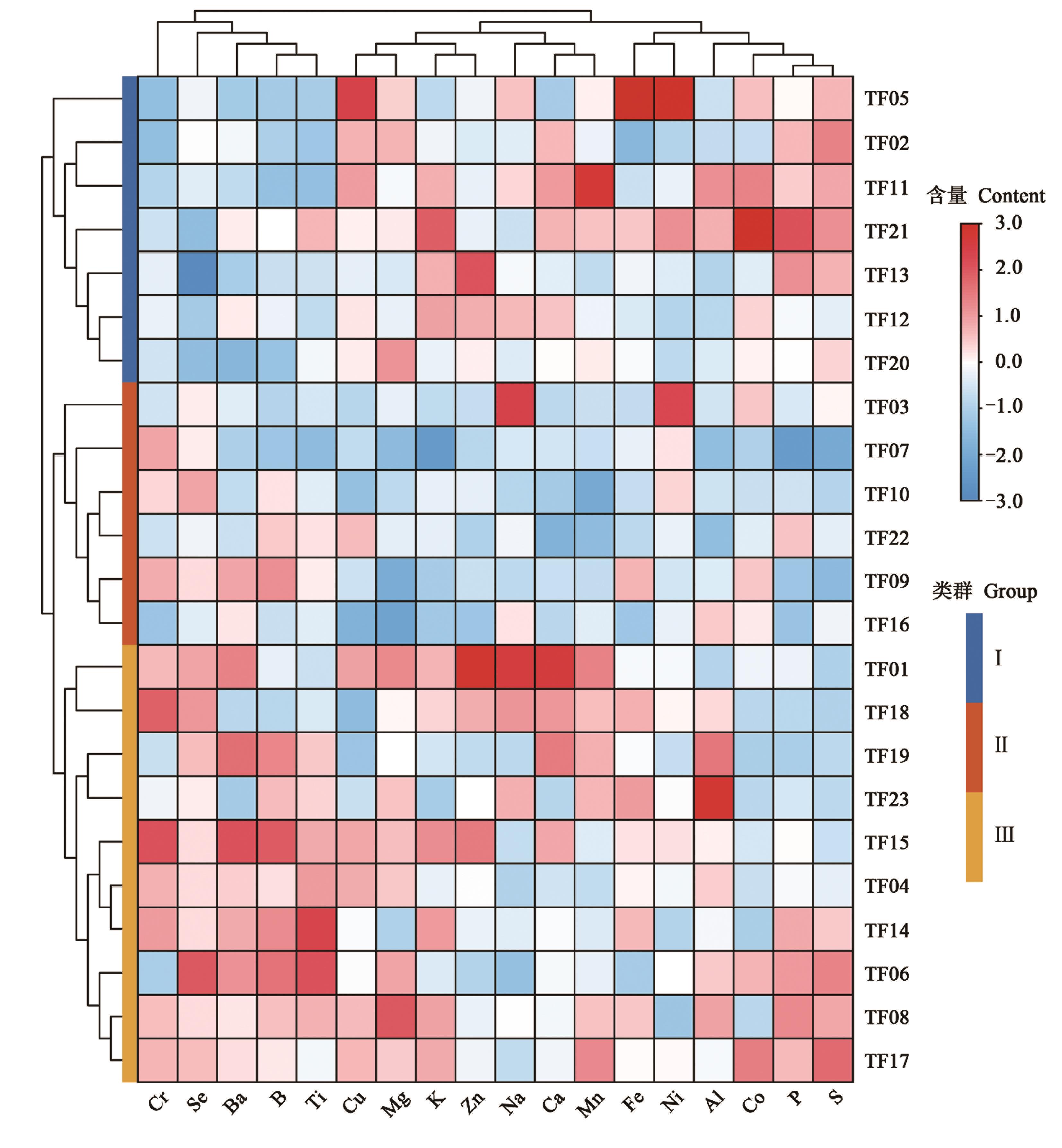 Table 3 Principal component analysis of the content of 18 mineral elements in 23 tea flower samples