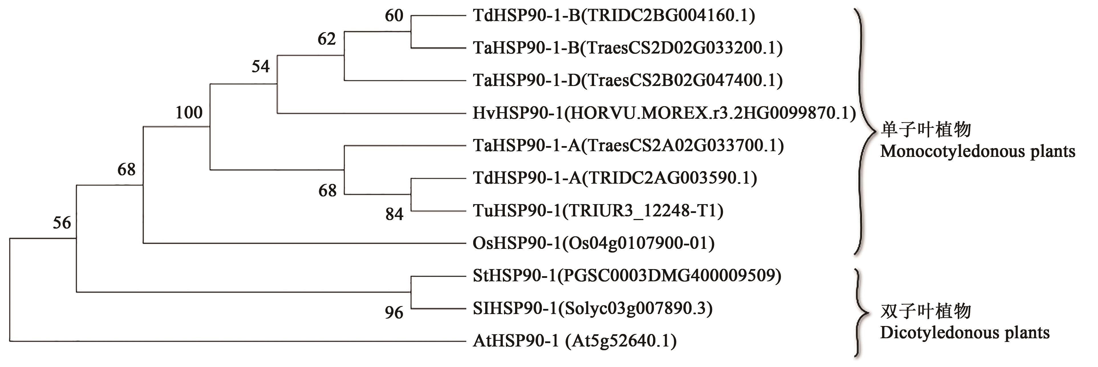 Fig.3 Phylogenetic analysis of wheat TaHSP90-1 protein and other plant homologous protein sequencesNote:At—Arabidopsis thaliana; Os—Oryza sativa; Tu—Triticum urartu; Hv—Hordeum vulgare; Td—Triticum dicoccoide; Sl—Solanum lycopersicum; St—Solanumtuberosum; Ta—Triticum aestivum.