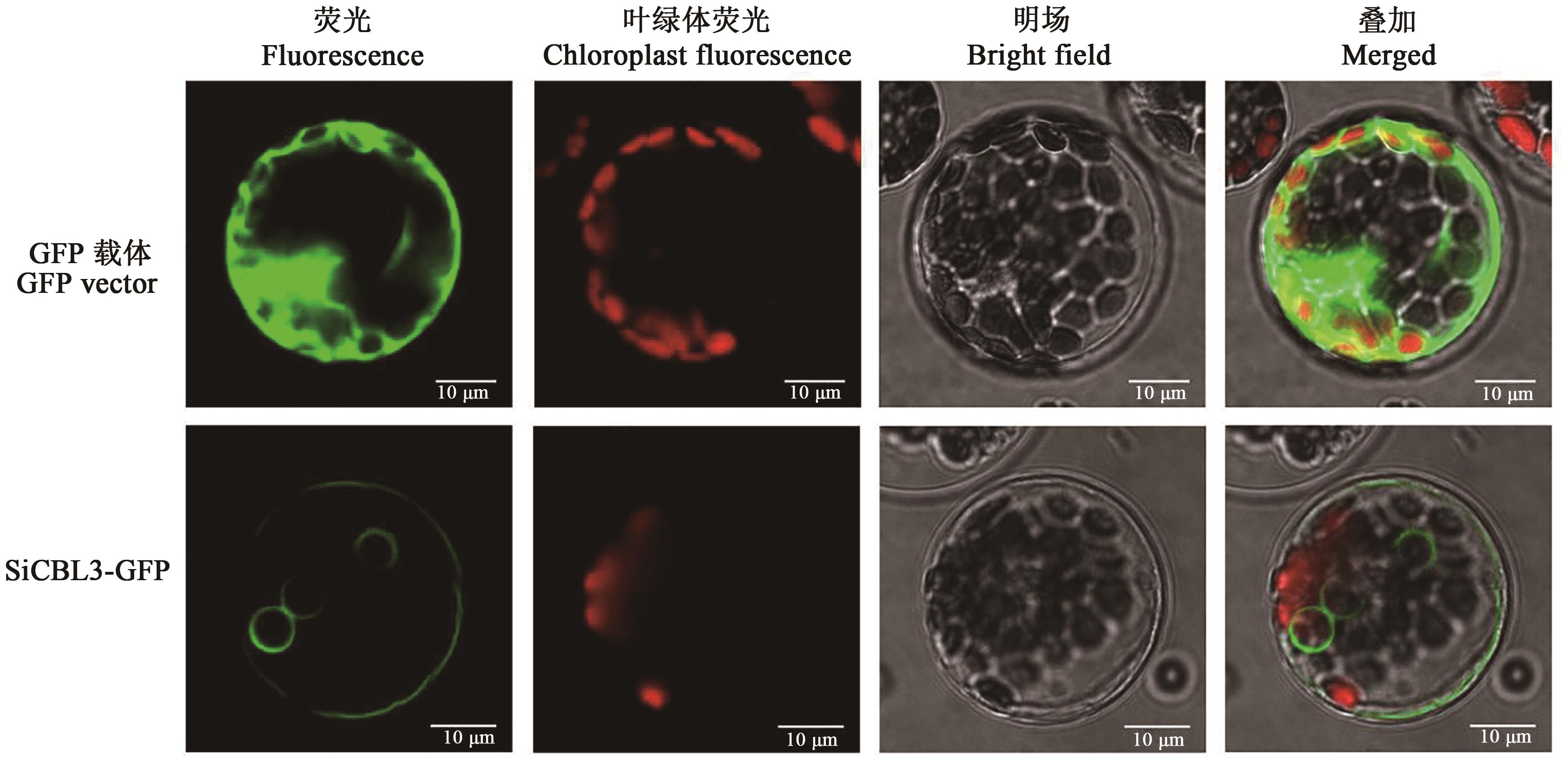 Calcineurin B-like protein (CBL) plays an important role in plant stress response. Previous studies showed that SiCBL3 was strongly induced by drought and salt, so this study further analyzed its function. Retrieval revealed that SiCBL3 was located on chromosome 3, had 2 transcripts, encoded 226 amino acids, and contained 3 typical EF-hand domains. Subcellular localization speculated that SiCBL3 protein was mainly located on the vacuolar membrane. Real-time PCR analysis showed that SiCBL3 responsed to PEG, salt, high temperature, low temperature and ABA in the foxtail millet seedling stage. The analysis of drought stress at different growth stages showed that SiCBL3 was highly expressed at heading and filling stage under normal conditions, and was induced by drought at jointing, heading and filling stage. Tissue expression analysis revealed that SiCBL3 was mainly expressed in the top 2nd leaves, stems, leaf sheaths, panicles and other aboveground organs, while the expression level in roots was low. The analysis of different growth stages also showed that the expression of SiCBL3 was higher in stems and leaves, but lower in roots. Subsequent tissue analysis at the filling stage also showed that SiCBL3 was mainly expressed in aboveground tissues such as top 2nd leaf, stem, spike-stalk, leaf sheath and grain, and was strongly induced under drought stress. These results revealed that SiCBL3 was highly expressed in the aboveground tissues, and participated in the response to drought and other stresses in the middle and late stages, especially played an important role in the response to drought stress at the filling stage. This study laid a foundation for further function analysis of CBL family genes in foxtail millet.