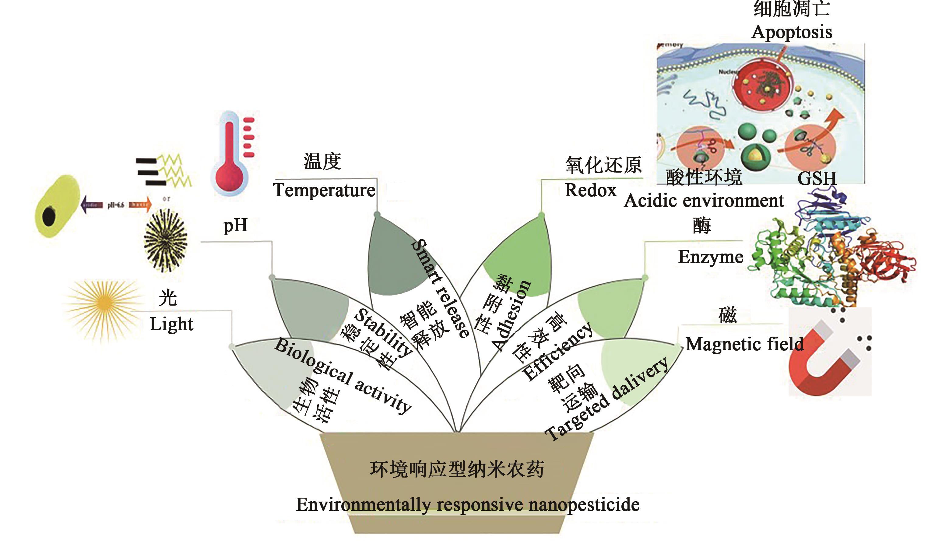 纳米杀虫剂 Nano insecticide | 噻虫嗪[ Thiazine[ | HMS | P(NIPAMMAA) | 28、31、34 ℃ | — | 25.03%(28 ℃,14 d)、39.77%(31 ℃,14 d)、50.39%(34 ℃,14 d) | 褐飞虱 Brown planthopper | 高温下(31、34 ℃)对于褐飞虱的抑制率高于低温(28 ℃),且持效期更长。 The inhibition rate of N. lugens at high temperature (31, 34 ℃) was higher than that at low temperature (28 ℃), and the duration of effect was longer. |