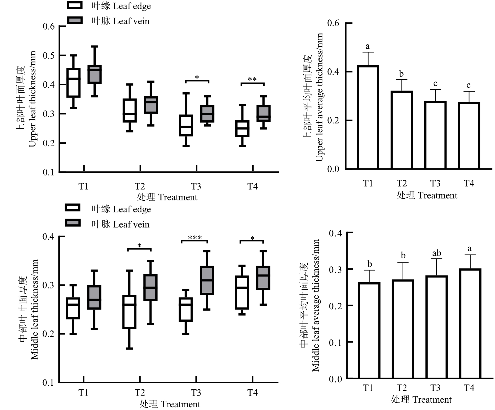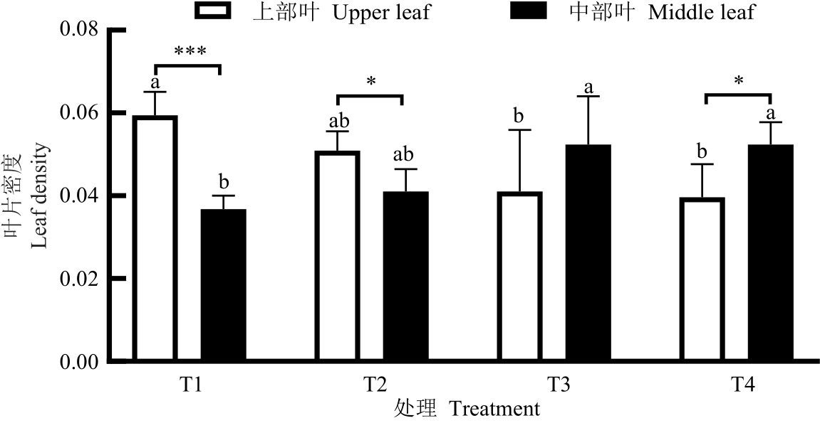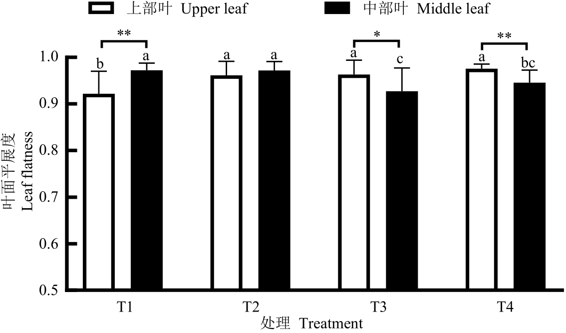 为探究遮阴栽培对雪茄茄衣品种叶面均匀性的影响,以雪茄茄衣品种‘楚雪26号’(CX-26)为研究对象,在大田试验条件下进行不同程度的遮阴处理,分析其成熟期上部叶和中部叶的叶面厚度、叶面平展度、叶片密度、主支脉粗细、主支脉占叶片干物质量比例以及SPAD值等的差异。结果表明,随着遮阴程度的增加,上部叶的叶面厚度、叶片密度以及叶片SPAD值均逐渐下降;当透光率为70%时,叶面厚度、叶片密度与不遮阴处理相比分别下降35.5%和33.3%,而中部叶中各性状则逐渐上升。遮阴栽培显著增加上部叶的叶面平展度,但降低了中部叶的叶面平展度;在透光率为70%时,上部叶的叶面平展度达到最大,为0.98;遮阴栽培增加上部叶主支脉占叶片干物质量比例,对中部叶主支脉占叶片干物质量比例的影响随遮阴程度的增加呈下降趋势,但差异不显著。遮阴栽培对中部叶主支脉的粗细程度无影响,但使上部叶的主支脉变细。以上研究结果为国产雪茄茄衣烟叶遮阴栽培技术提供理论基础。