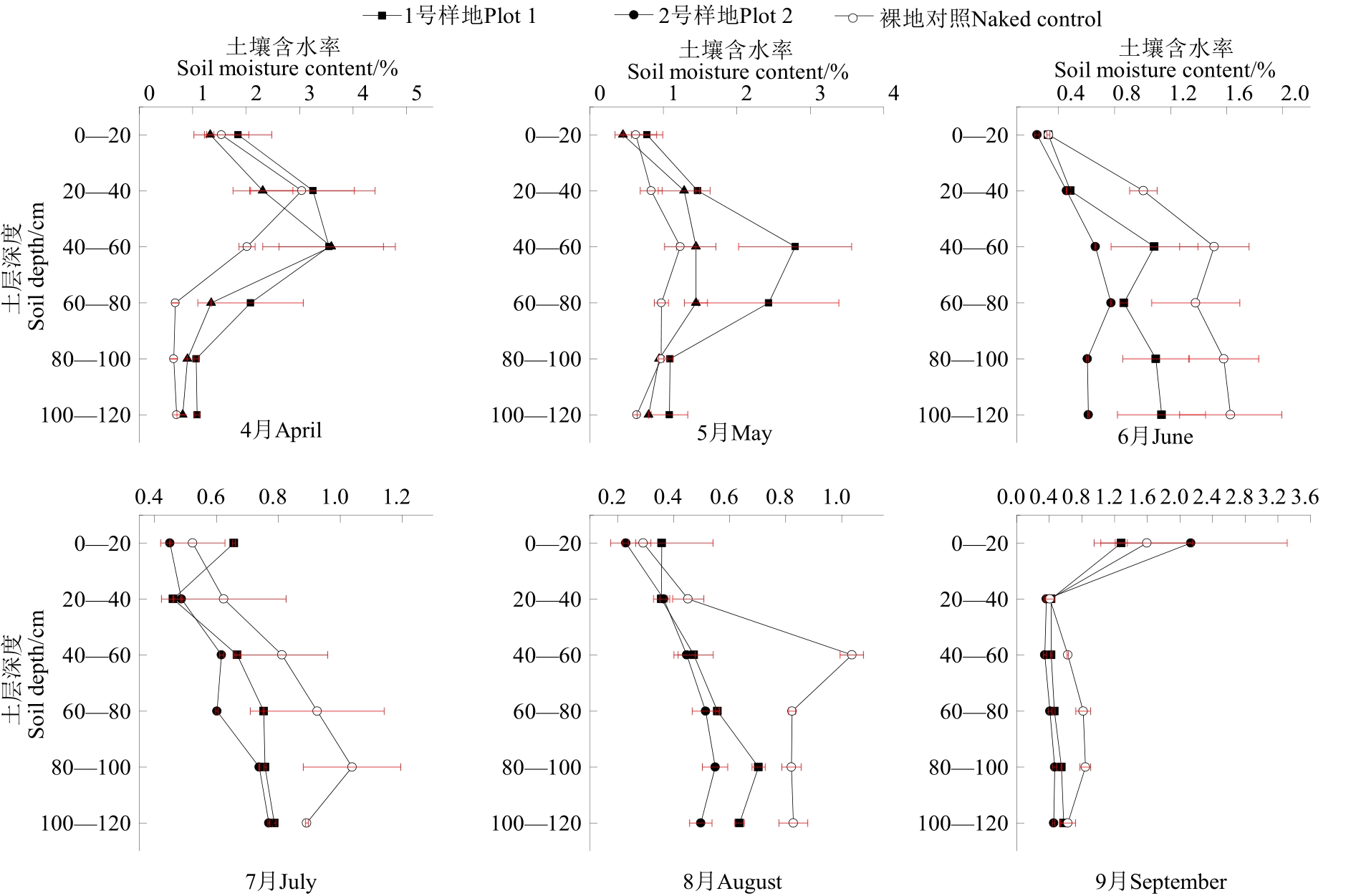 月份Month | 1号样地Plot 1 | 2号样地Plot 2 | 裸地对照Naked control |