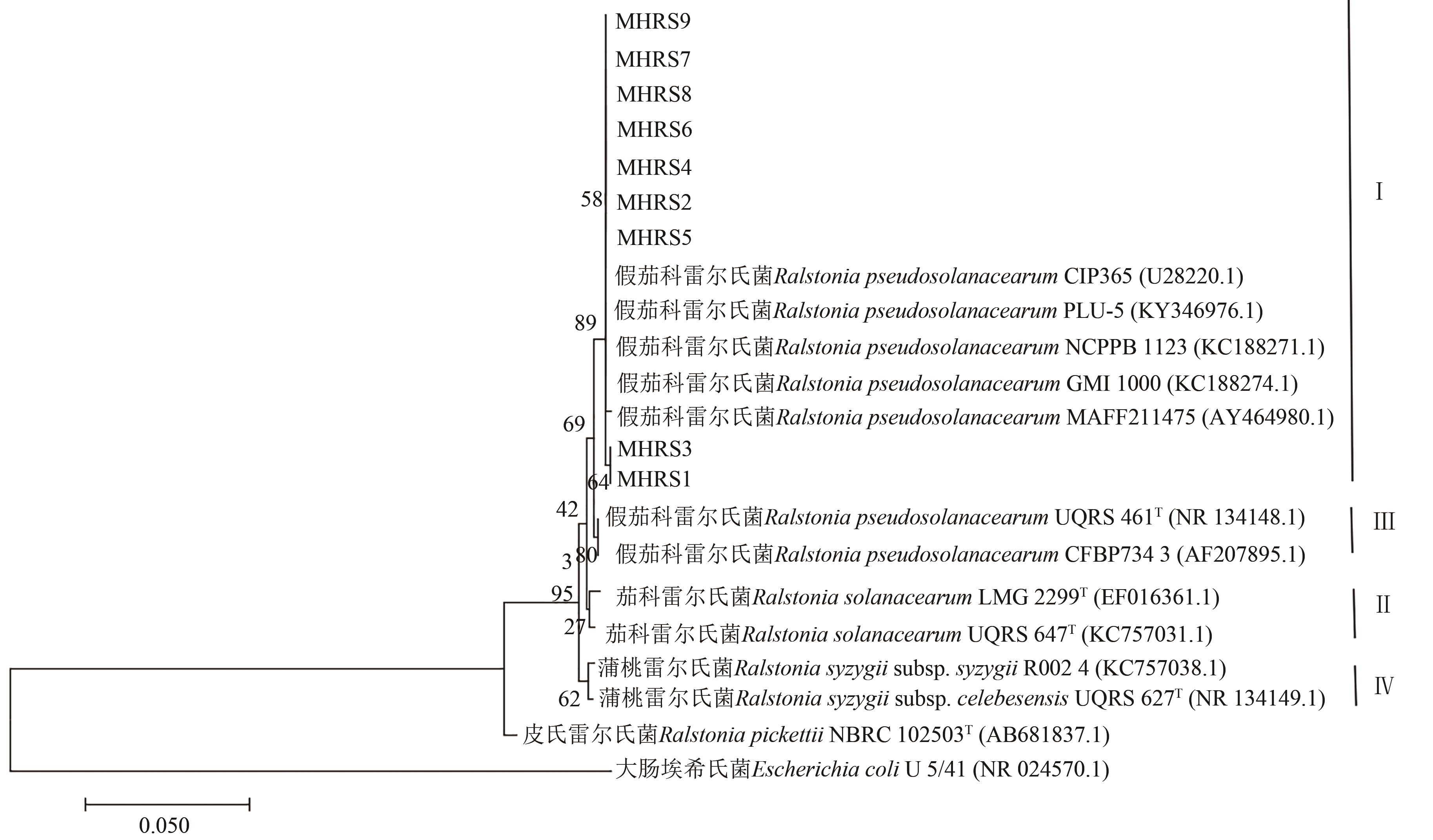 | CHEN Y Y. The phylotype and sequevar of Ralstonia solanacearum and characteristics of bacterial wilt pathogen isolated from Cucurbitaceae plants in Guangxi [D]. Nanning: Guangxi University, 2018. | |