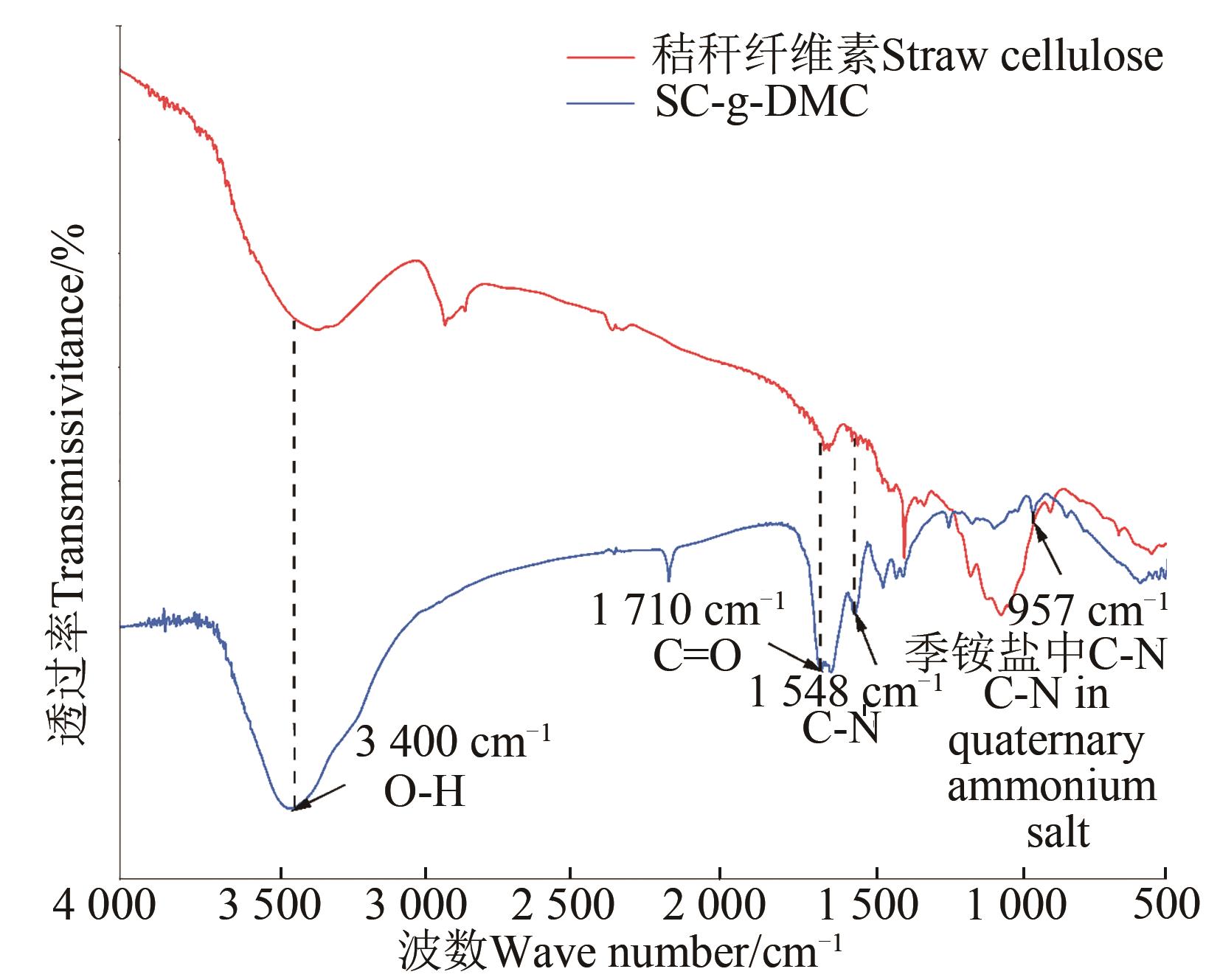 为研发基于农作物秸秆的新型天然高分子絮凝剂,通过硝酸-乙醇法提取玉米、水稻和小麦3种作物秸秆中的纤维素,并在均相水溶液中(反应温度为30、40、50和60 ℃)与甲基丙烯酰氧乙基三甲基氯化铵(methacryloxyethyltrimethyl ammonium chloride,DMC)接枝共聚生成秸秆纤维素接枝DMC絮凝剂(straw cellulose grafted methacryloxyethyltrimethyl ammonium chloride flocculant, SC-g-DMC)。结果显示,3种作物秸秆提取后纤维素含量最佳为(69.8%±1.7%),样品的接枝率最佳为(36.9%±3.1%)。红外光谱和扫描电子显微镜(scanning electron microscope, SEM)间接证实了单体成功接枝到秸秆纤维素表面。SC-g-DMC对奶牛场污水的絮凝效果表明,在不同反应温度下污染物去除效率随反应温度的升高呈先升高后下降趋势,反应温度为40 ℃时制备的SC-g-DMC的絮凝效果最佳,100 mg·L-1 SC-g-DMC对奶牛场污水的化学需氧量去除率为(13.9%±2.3%),浊度去除率为(30.6%±5.6%),总悬浮固体去除率为(33.8%±0.9%)。以上结果表明该絮凝剂具有良好的应用前景,可为新型天然高分子絮凝剂的应用提供基础数据。
