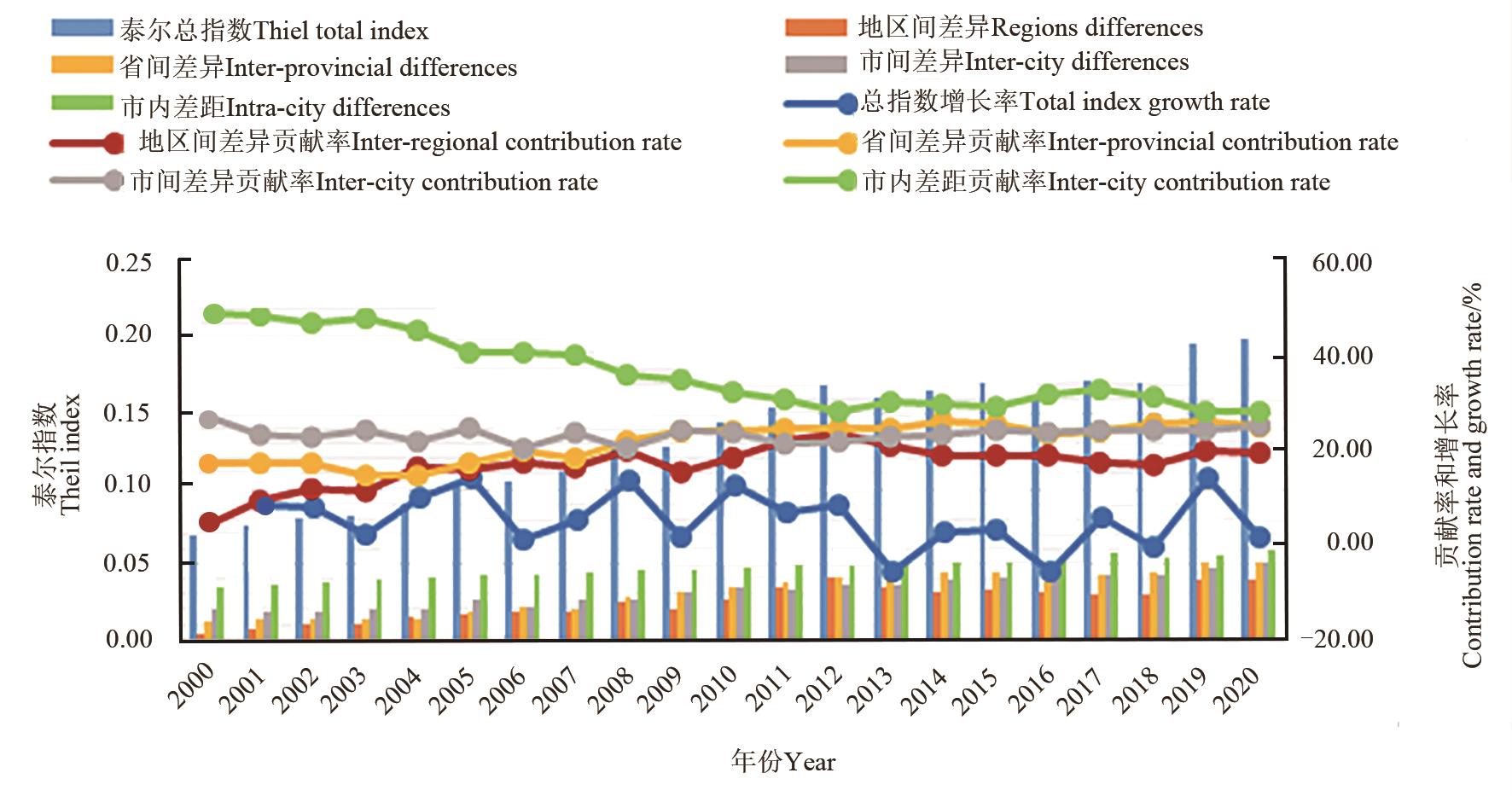 Fig. 2 Three stage nested decomposition results of Theil indexNote: Data sources are from China County Statistical YearbookChina Regional Economic Statistical Yearbook and each County Statistical Yearbook, excluding data from Hong Kong, Macao and Taiwan regions.