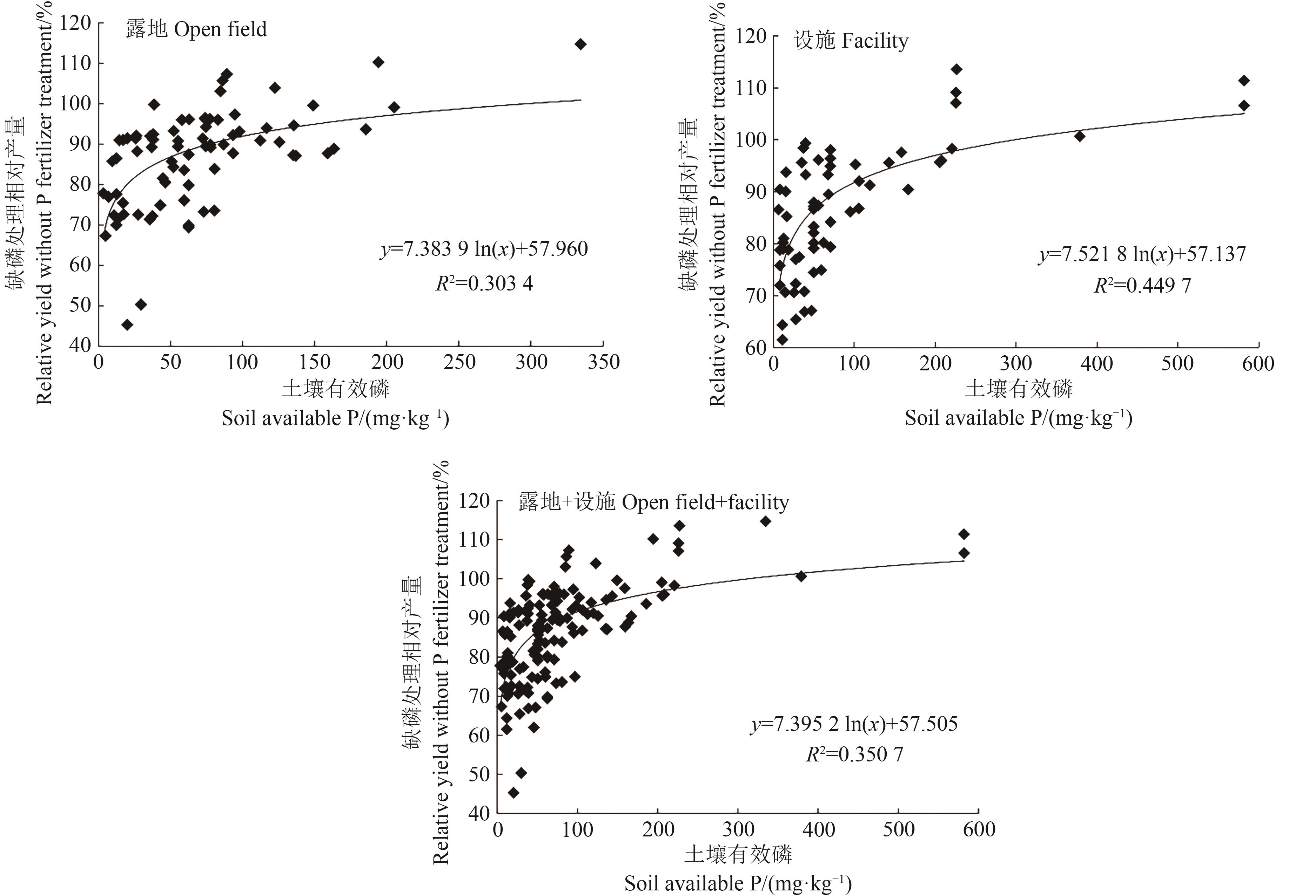 为给我国番茄测土施磷提供有效参考,在数据库中检索我国开展的番茄施肥相关试验文献,并采用零散试验数据整合法和养分平衡-地力差减法新应用公式,对我国番茄土壤有效磷丰缺指标与推荐施磷量进行研究。结果表明,我国番茄露地土壤有效磷第1~6级丰缺指标依次为:≥296.9、76.6~296.8、19.8~76.5、5.1~19.7、1.3~5.0和<1.2 mg·kg-1,设施土壤有效磷第1~6级丰缺指标依次为:≥298.4、79.0~298.3、20.9~78.9、5.5~20.8、1.5~5.4和<1.4 mg·kg-1,露地+设施土壤有效磷第1~6级丰缺指标依次为:≥313.0、81.0~312.9、20.9~80.9、5.4~20.8、1.4~5.3和<1.3 mg·kg-1。当磷肥当季利用率15%~35%、番茄目标产量45~195 t·hm-2时,土壤有效磷丰缺级别第1~6级的推荐施磷量依次为0、13~130、26~260、39~390、51~520和64~650 kg·hm-2。该研究建立了我国番茄土壤有效磷丰缺指标推荐施磷系统,为我国番茄测土施磷提供了科学依据。