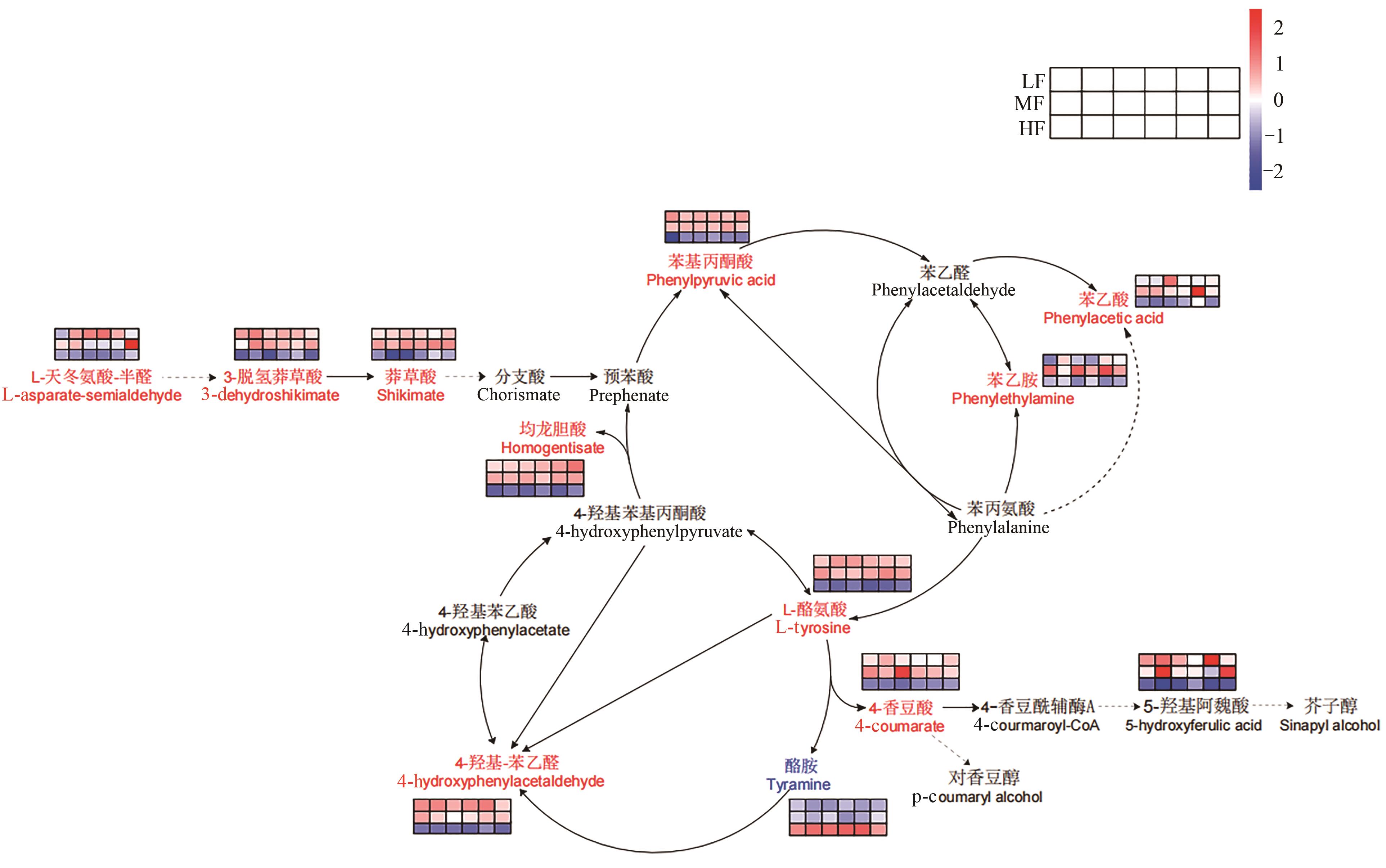 3-脱氢莽草酸3-dehydroshikimate | 8.87±0.02 a | 8.86±0.02 a | 8.74±0.04 b |