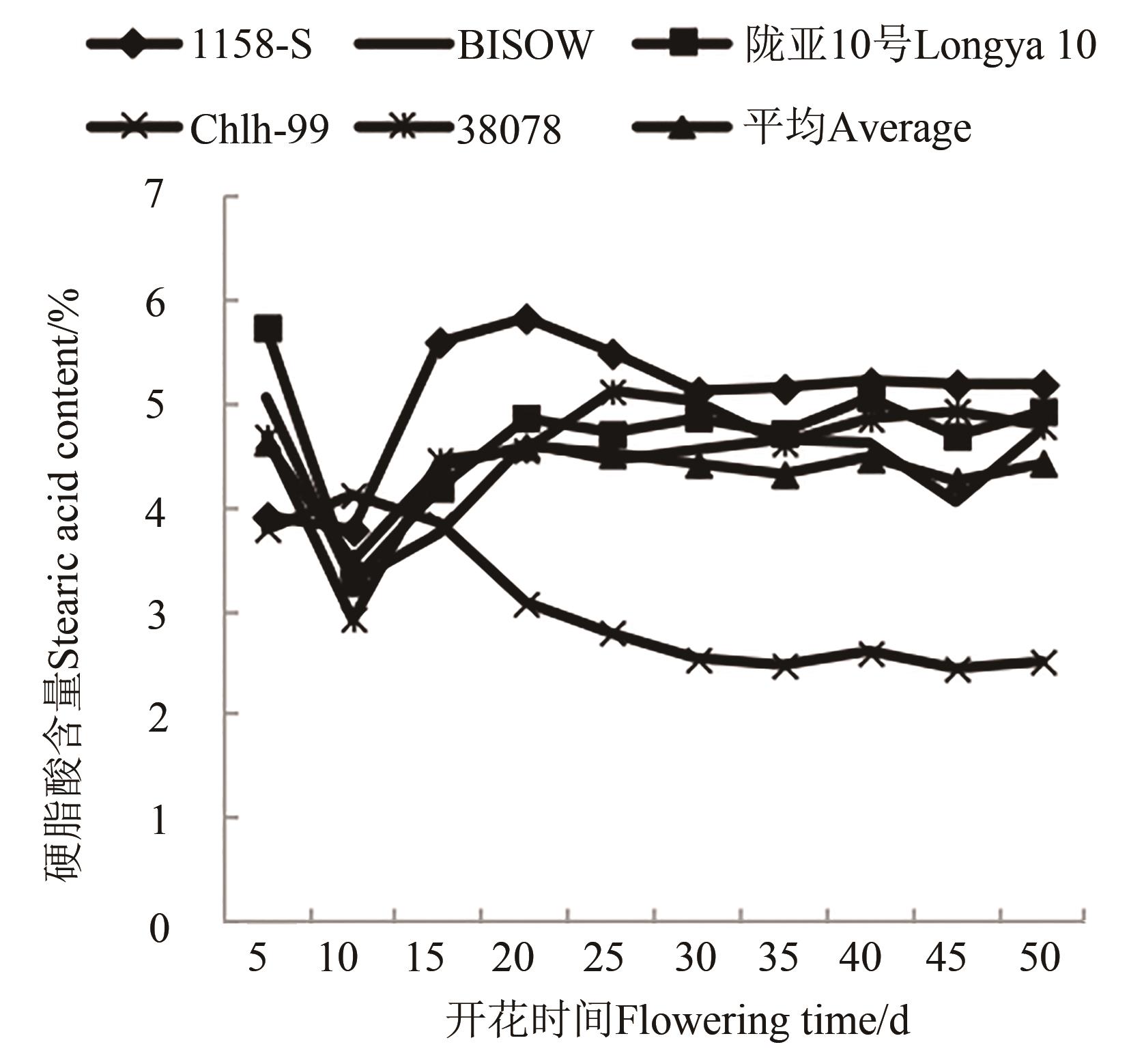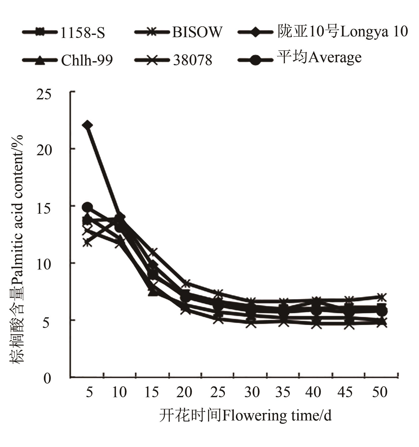 指标 Index | 含水量 Water content | 籽粒干重 Seed weight | 含油率 Oil content | 棕榈酸 Palmitic acid | 硬脂酸 Stearic acid | 油酸 Oleic acid | 亚油酸 Linoleic acid | 亚麻酸Linolenic acid |